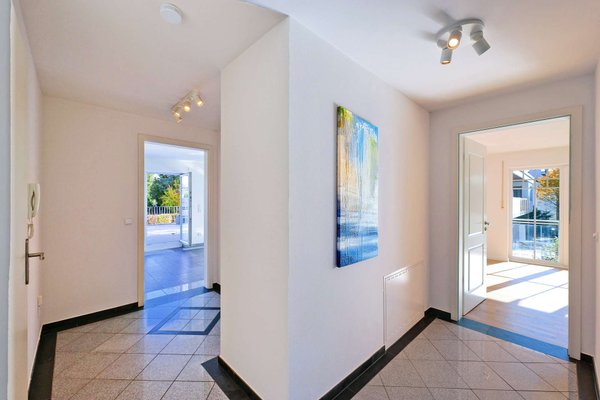 Diese lichtdurchflutete, elegant geschnittene 3-Zimmer-Obergeschosswohnung mit einer rund 40 m² großen Dachterrasse vereint auf besondere Weise Raumgefühl, Stil und Wohlbefinden. Schon beim Eintreten spürt man die Großzügigkeit und Harmonie, die