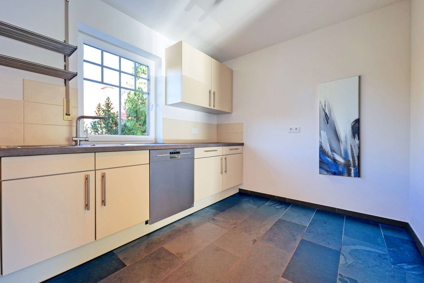 Der offene Wohn- und Essbereich bildet das Herzstück der Wohnung. Großzügige Fensterflächen fluten den Raum mit Tageslicht und schaffen eine Atmosphäre voller Wärme und Offenheit. Die moderne Wohnküche ist mit einer gepflegten Einbauküche ausgestattet und bietet alles, was man für den täglichen Komfort benötigt. Vom Wohnbereich aus gelangt man direkt auf die neu errichtete, nach Osten ausgerichtete Dachterrasse – ein echtes Highlight dieser Immobilie. Hier lässt sich der Tag bei Sonnenaufgang beginnen oder in entspannter Runde ausklingen.