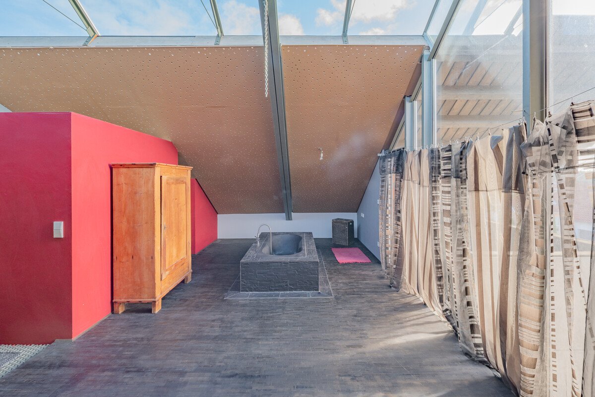Das Anwesen ist von Tageslicht verwöhnt, durch großzügige Fensterfronten und eine Firstverglasung.