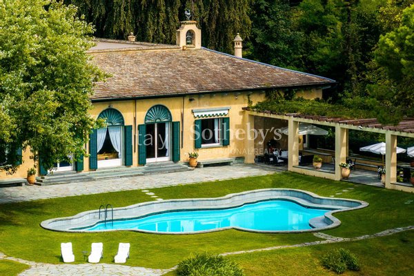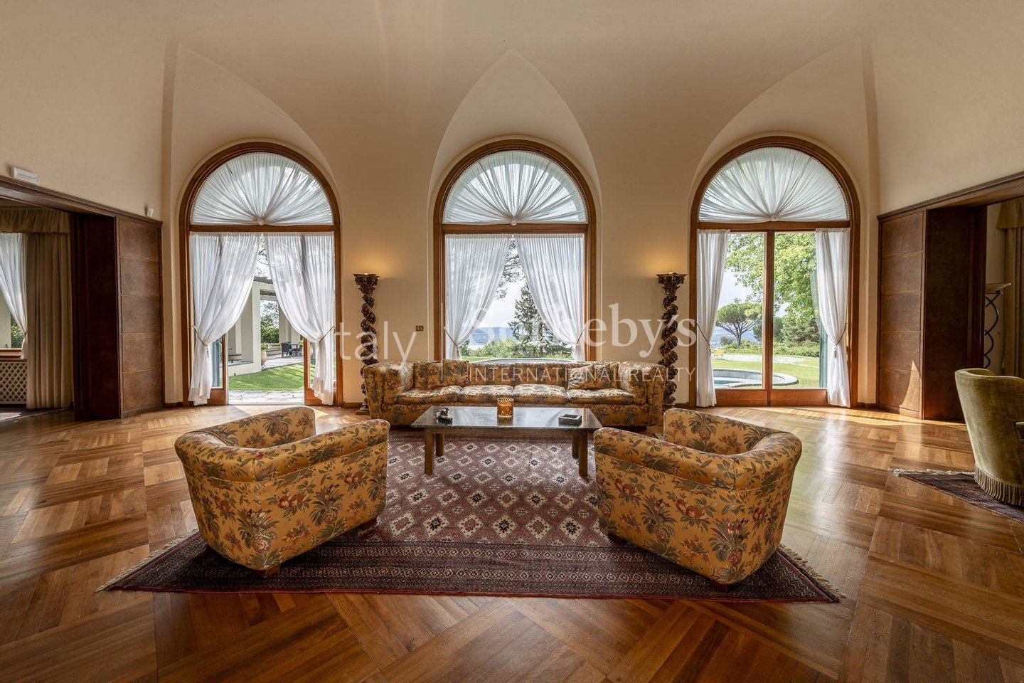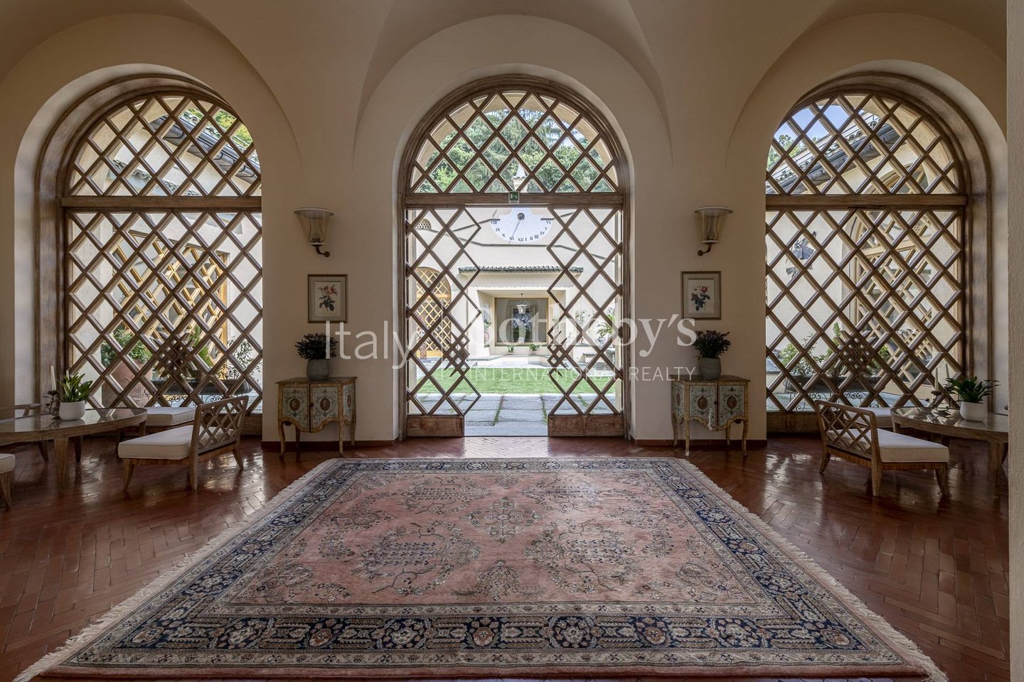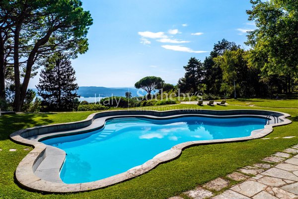 Ein markantes architektonisches Merkmal ist der Swimmingpool, dessen Form an den Lago di Varese erinnert und sich harmonisch in den umgebenden Garten einfügt. Das gesamte Anwesen ist von einem 11 Hektar großen Park umgeben, mit einer majestätischen 800 Meter langen Zufahrt. Die Villa verfügt zudem über ein Wassersystem mit eigener Quelle und Auffangbecken, das eine nachhaltige Nutzung der Ressourcen gewährleistet.