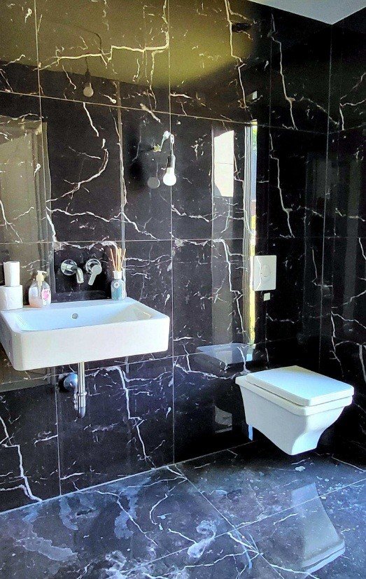 -Gäste-WC mit marmorierten Fliesen