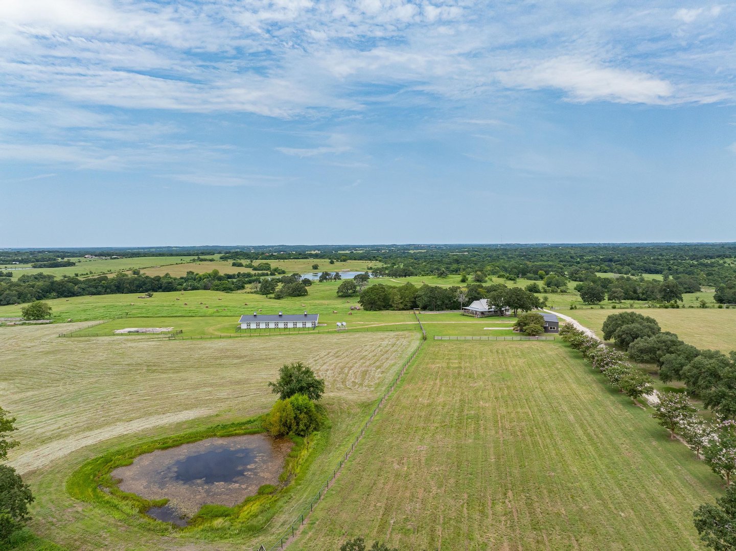 Ein außergewöhnliches texanisches Erbe erwartet Sie auf der Cardan Ranch, einem spektakulären 642 Hektar großen Anwesen, auf dem sanfte Hügel, unberührte Teiche und weitläufige Ausblicke die Landschaft bestimmen. Dieses außergewöhnliche Anwesen verbindet nahtlos natürliche Pracht mit ausgeklügelter Infrastruktur und bietet unvergleichliche Möglichkeiten zur Erholung, Viehzucht oder zur Schaffung eines Mehrgenerationen-Familienanwesens. Acht glitzernde Teiche säumen das Gelände, darunter einer, der mit Barschen aus Florida zum Trophäenfischen bestückt ist. Quereingezäunte Weiden unterstützen die Viehzucht, während die landwirtschaftliche Ausnahmeregelung des Grundstücks erhalten bleibt. Die östliche Fläche bietet einen außergewöhnlichen Lebensraum für Wildtiere und schafft ein Paradies für Jagdbegeisterte. Drei liebevoll positionierte Residenzen und eine umfassende Reitanlage mit zehn Boxen runden dieses seltene Angebot ab. Diese prächtige Ranch liegt nur dreißig Meilen von College Station und fünfundsiebzig Meilen von Houston entfernt und stellt mehr als nur Immobilien dar – sie verkörpert den authentischen texanischen Lebensstil.
