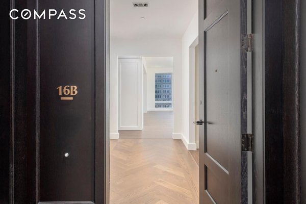 Unit 16B erhebt sich über der Stadt im 16. Stock der renommierten Four Seasons Private Residences und bietet 2.911 Quadratfuß durchdacht gestalteten Wohnraum mit weiten südöstlichen Blicken auf die Skyline von San Francisco. Ein formeller Eingang