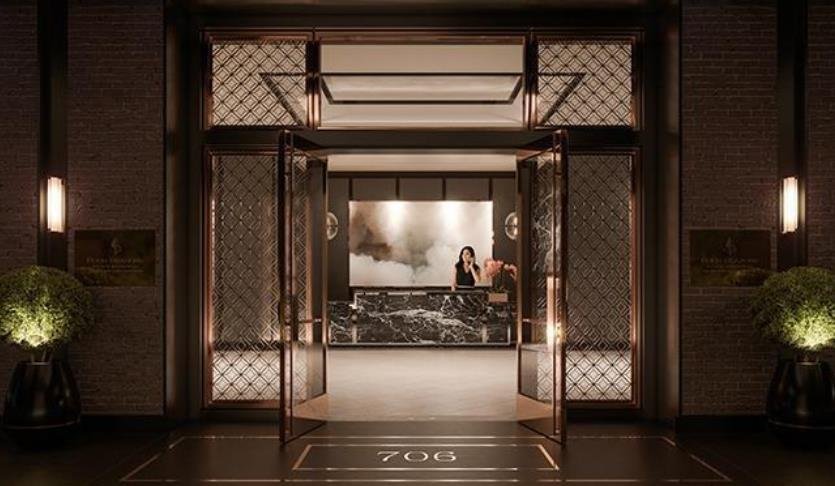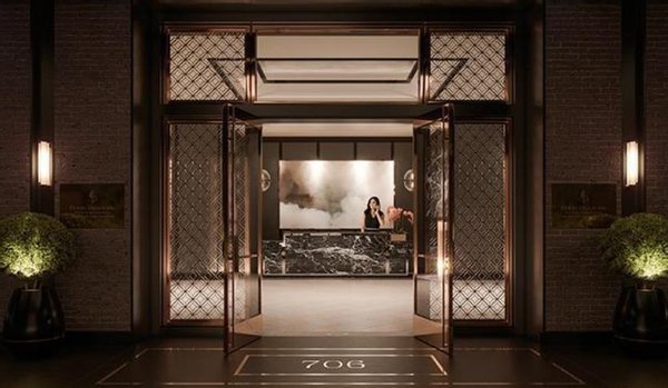 Unit 16B erhebt sich über der Stadt im 16. Stock der renommierten Four Seasons Private Residences und bietet 2.911 Quadratfuß durchdacht gestalteten Wohnraum mit weiten südöstlichen Blicken auf die Skyline von San Francisco. Ein formeller Eingang