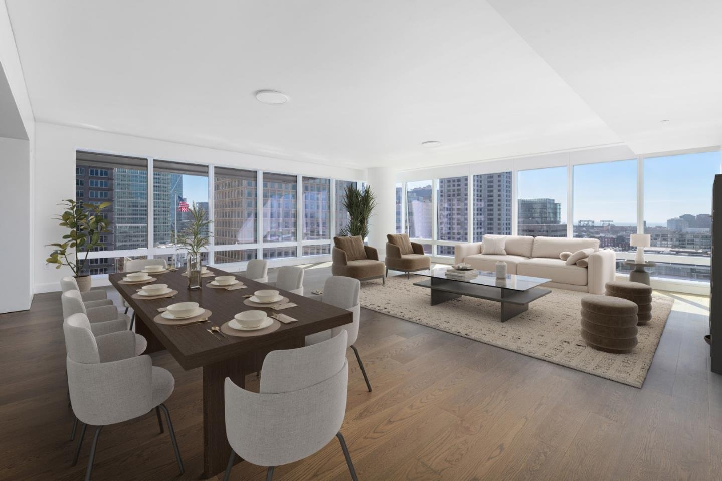 Unit 16B erhebt sich über der Stadt im 16. Stock der renommierten Four Seasons Private Residences und bietet 2.911 Quadratfuß durchdacht gestalteten Wohnraum mit weiten südöstlichen Blicken auf die Skyline von San Francisco. Ein formeller Eingang führt zu einem weitläufigen Wohnzimmer mit bodentiefen Fenstern, die das Innere mit natürlichem Licht fluten. Das offene Layout ist ideal sowohl für anspruchsvolle Unterhaltungen als auch für den Alltag und lässt nahtlos in eine Designerküche mit erstklassigen Haushaltsgeräten, Poggenpohl-Schränken und geschliffenen Calacatta Oro-Marmorarbeitsplatten übergehen. Entworfen von Handel Architects, verfügt das Haus über drei geräumige Schlafzimmer, jedes mit eigenem Bad und großzügigem Stauraum. Die Hauptsuite erinnert an ein privates Spa mit geschliffenen französischen Marmorböden aus Blue de Savoie, weichen grauen Poggenpohl-Schränken und Statuario-Marmoroberflächen. Die Bewohner genießen erstklassige Four-Seasons-Annehmlichkeiten, darunter eine Clublounge mit Bar und privatem Dining, eine Außenunterhaltungsterrasse, ein Fitnesscenter, einen Golfsimulator, einen Spielraum, eine Bibliothek und einen eigenen Club Attendant. Eine seltene Gelegenheit, den Höhepunkt von Luxus und Komfort im Herzen von San Francisco zu erleben.