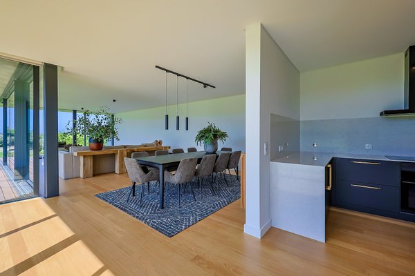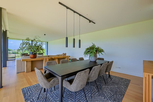 Die Villa liegt auf einem großzügigen Grundstück von 1.450 m² und bietet 328 m² Gesamtfläche und 240 m² Innenwohnfläche. Das offene, fließende Layout verbindet sich mühelos mit der Außenwelt und verwischt die Grenzen zwischen dem Inneren und dem üppigen Garten, der es umgibt. Bodentiefe Fenster rahmen die Landschaft ein, während natürliche Materialien jedem Raum Wärme und Struktur verleihen.