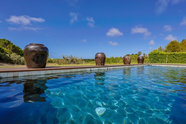 Das Haus verfügt über drei Schlafzimmer und vier Badezimmer, die Komfort und Raffinesse gleichermaßen verbinden. Die Wohnbereiche sind lichterfüllt und offen, perfekt zum Bewirten oder einfach zum Entspannen in Ruhe. Draußen schaffen ein privater Swimmingpool, eine Sonnenterrasse und ein angelegter Garten ein ruhiges Refugium, in dem Sie in völliger Privatsphäre entspannen können.