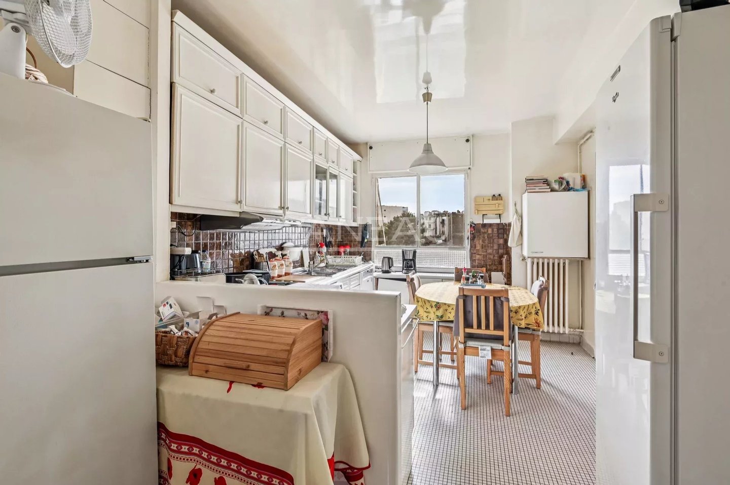 EXKLUSIV: 163,53 m² große Familienwohnung in Loi Carrez im siebten Stock eines modernen Gebäudes mit Architektur der 60er Jahre, das gepflegte Gemeinschaftsbereiche und funktionalen Wohnkomfort bietet und Zweckmäßigkeit und Luxus mit Aufzug und Hausmeister verbindet.