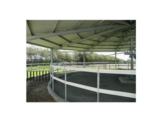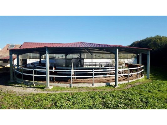 A covered horse walker (electric) with an 18 m diameter for up to 4 horses.