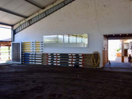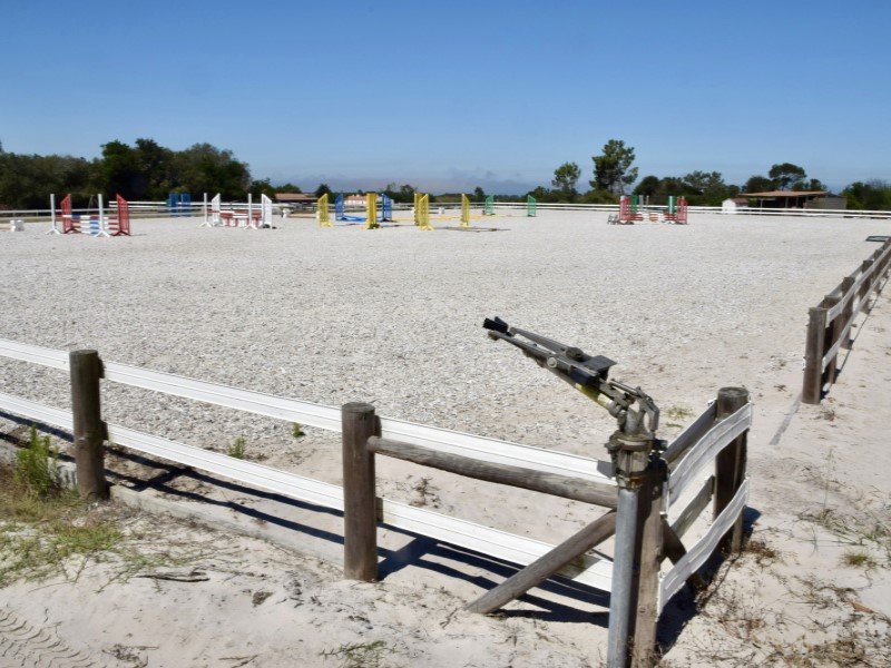 An Obstacle Course Arena with a synthetic floor and 6 irrigation cannons.