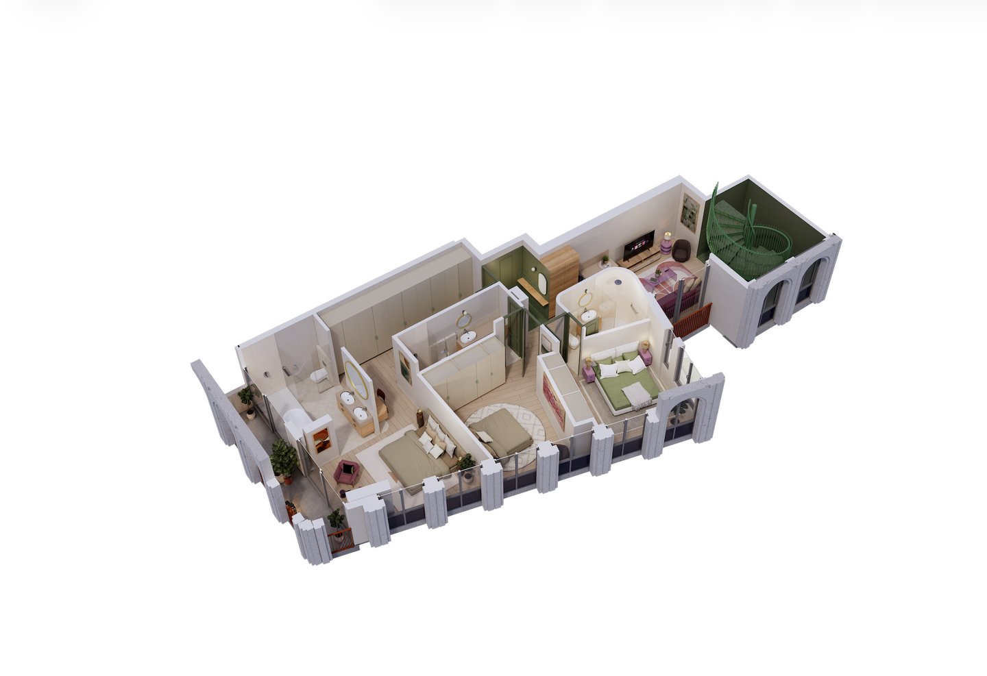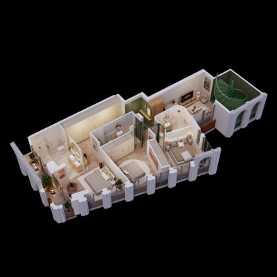 3 Apartments mit drei Schlafzimmern.