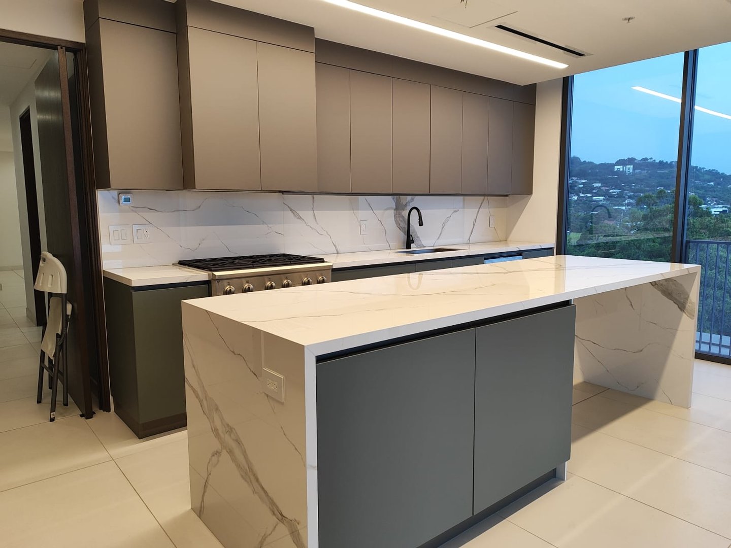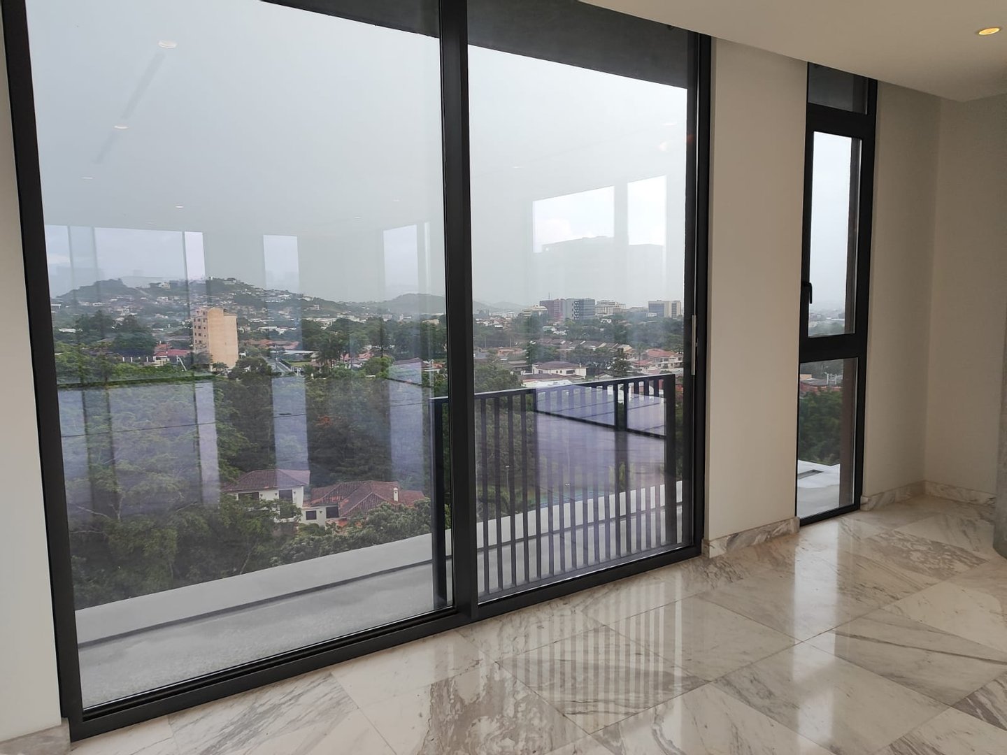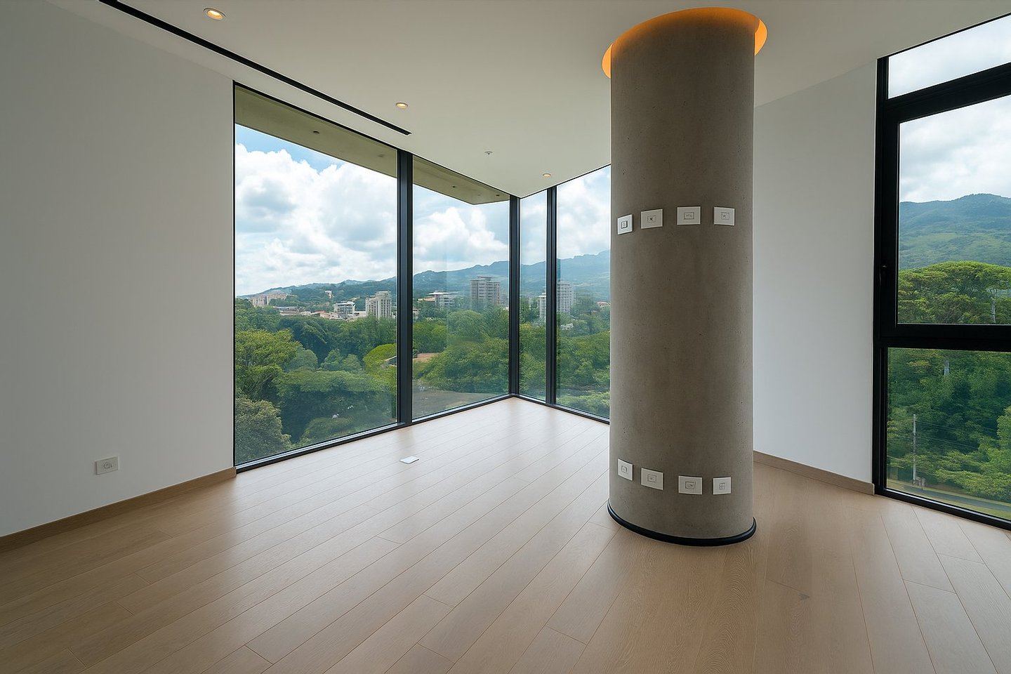 Hier rahmen weitläufige Glaswände weite Stadt- und Bergblicke ein, fluten jeden Raum mit natürlichem Licht und schaffen eine nahtlose Verbindung zwischen Architektur, Himmel und Landschaft.