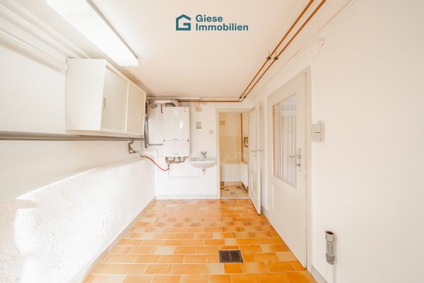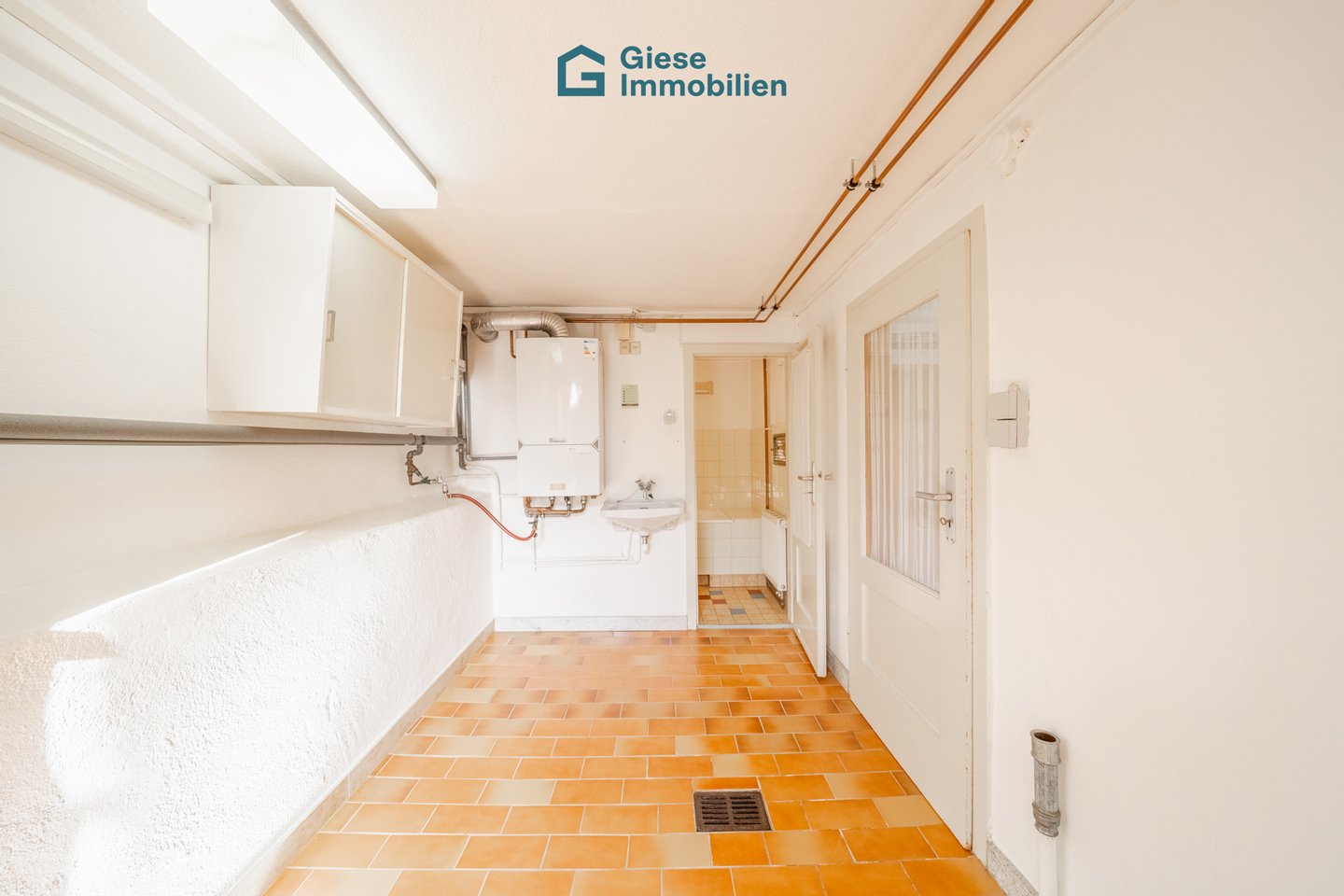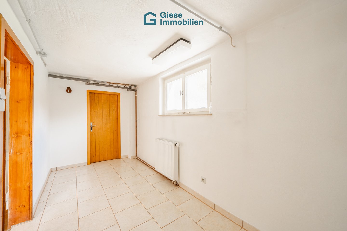 Der Keller überzeugt mit weiteren Nutz- und Abstellflächen sowie einem zusätzlichen Badezimmer (ohne WC) – praktisch nach dem Gärtnern.