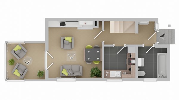 Im Inneren überzeugt die Doppelhaushälfte mit einer gemütlichen und funktionalen Aufteilung auf zwei Etagen. Im Erdgeschoss befinden sich der einladende Wohnbereich, die Küche sowie das Tageslichtbad mit Wanne. Der angrenzende, lichtdurchflutete und beheizte Wintergarten erweitert den Wohnraum und bietet einen wunderbaren Blick ins Grüne – ein Ort, um die Sonne zu genießen und den Tag entspannt ausklingen zu lassen, das gesamte Jahr über.