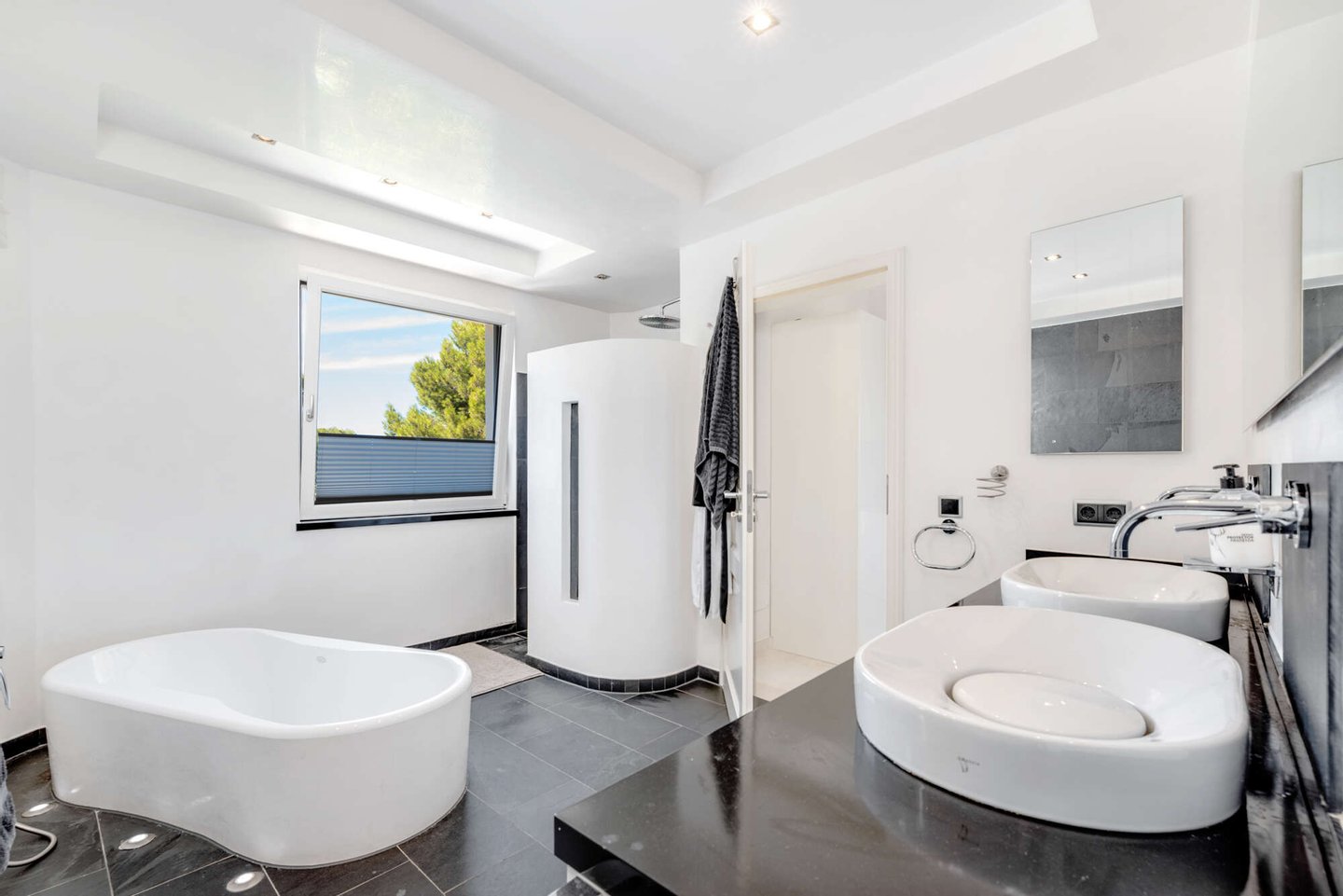 Palma de Mallorca erreichen Sie in etwa 20 Minuten, den Flughafen in rund 25 Minuten. Trotz der hervorragenden Anbindung bietet die Lage ein hohes Maß an Privatsphäre und Ruhe – ideal für Eigentümer, die Wert auf eine exklusive, aber unaufdringliche Umgebung legen.