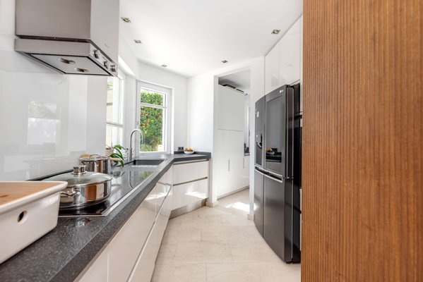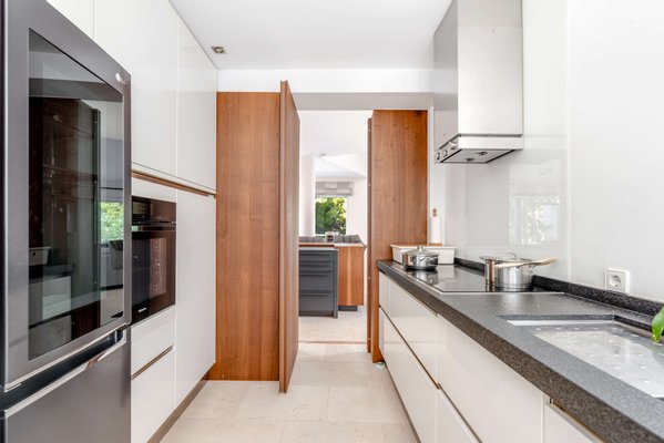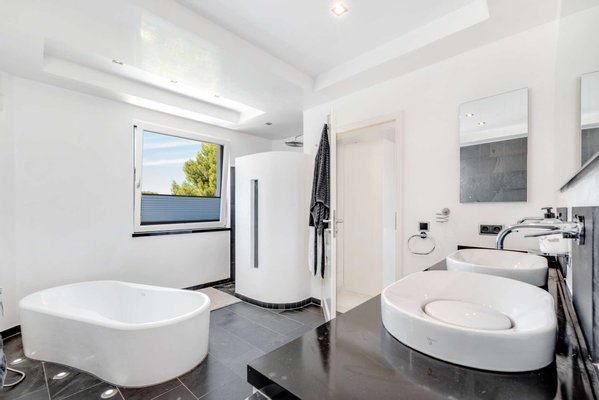 Die Ausstattung entspricht dem Anspruch einer zeitlosen Premium-Immobilie: Marmorböden, Fußbodenheizung, zentralisierte Klimaanlage, ein durchdachtes Lichtsystem sowie pflegeleichte Außenbereiche mit Lounge-Zonen und Sonnenplattform. Eine Garage und zusätzliche Stellplätze komplettieren das Angebot.