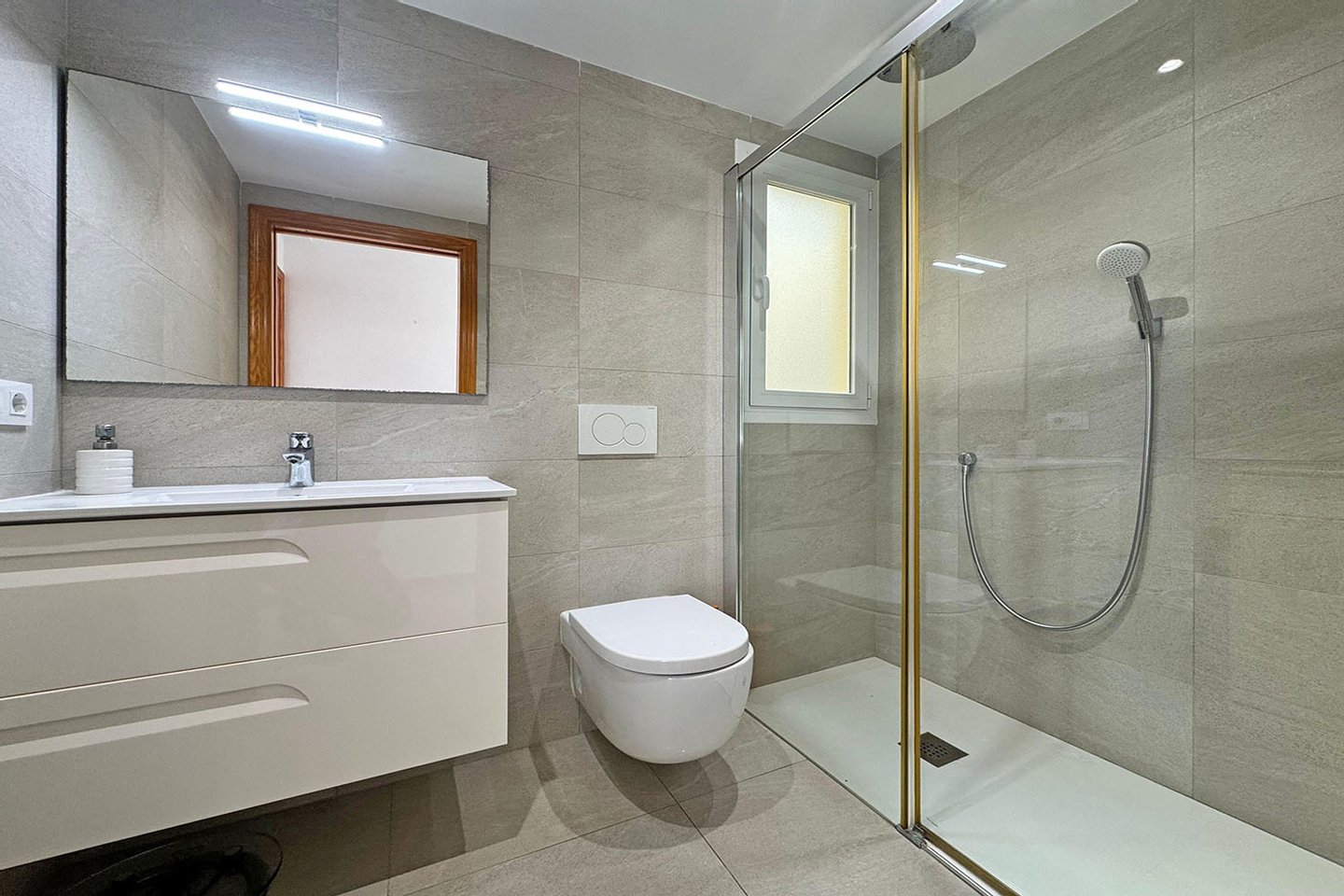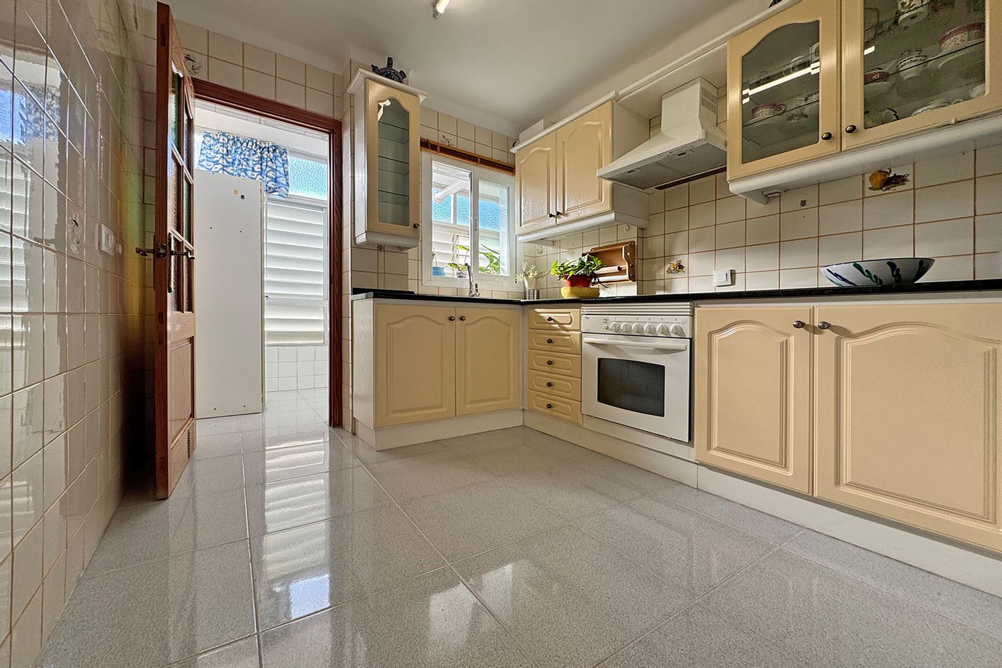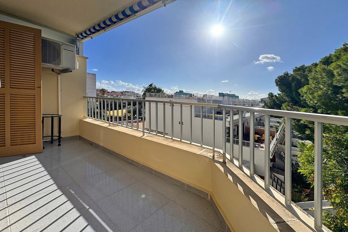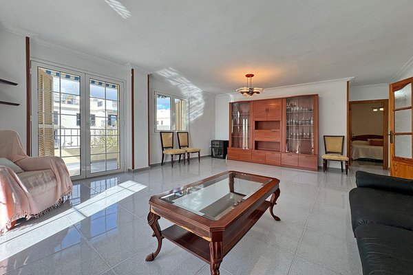 Dieses attraktive Apartment befindet sich im 3. Obergeschoss eines gepflegten Mehrparteienhauses mit Aufzug und zeichnet sich durch ihre unmittelbare Nähe zum Strand sowie eine funktionale Raumaufteilung aus. Der großzügige Wohnbereich mit Zugang zur überdachten Terrasse schafft ein offenes Wohnambiente und bietet vielseitige Nutzungsmöglichkeiten. Durch den geräumigen Wohnraum und die direkt angrenzende Küche bietet die Immobilie zudem sehr gutes Potenzial für eine Renovierung; die Wand zwischen beiden Bereichen kann bei Bedarf geöffnet werden, um ein noch großzügigeres Raumgefühl zu schaffen.