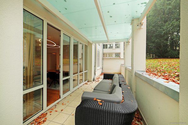 Die großzügige Terrasse ist teilweise überdacht und überzeugt durch den Blick ins Grüne sowie durch absolute Ruhe. Der ideale Ort für eine entspannte Zeit im Freien mit der Familie und Freunden.