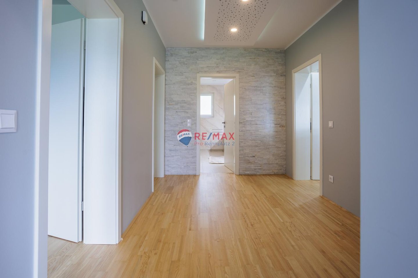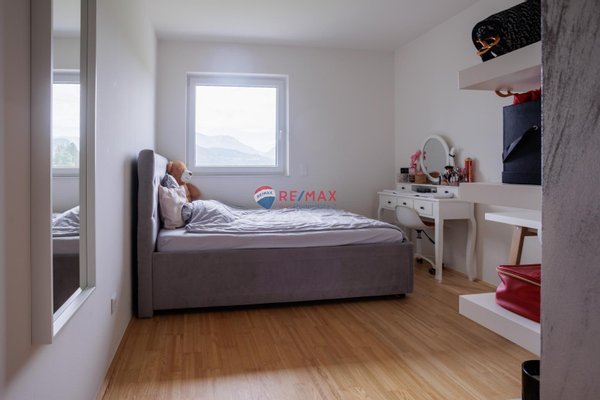 Über die einladende Haustüre gelangt man in den geräumigen Vorraum. Von hier aus führen die Wege in zwei Kinderzimmer, eines davon ist mit einem begehbaren Kleiderschrank ausgestattet. Direkt angrenzend befindet sich ein komfortables Badezimmer, das keine Wünsche offen lässt.