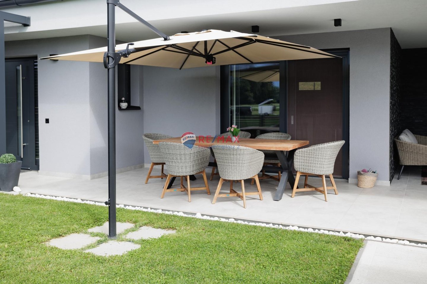 - Große Terrasse: Perfekt für entspannte Stunden, sonnige Tage und gesellige Abende mit Freunden oder auch nur in trauter Zweisamkeit, im Freien.