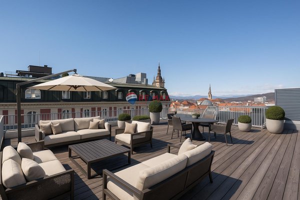 Diese stilvolle Maisonette-Wohnung vereint exklusives Design mit urbanem Wohnkomfort. Auf zwei Etagen bietet sie eine durchdachte Raumaufteilung, viel Licht, hochwertige Materialien und drei großzügige Terrassen mit herrlichem Ausblick. Ein besonderes Zuhause mitten im Stadtgeschehen – ruhig, sonnig und mit allem, was das Leben schöner macht.