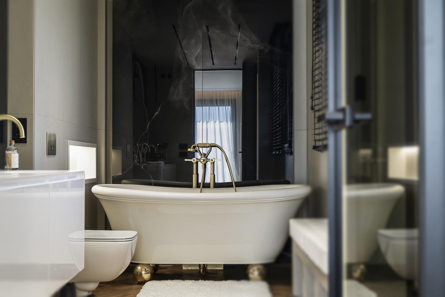 Die Liebe zum Detail spiegelt sich in jedem Winkel der Immobilie wider: Naturparkett im Fischgrätmuster, hochwertige Möbel von Saba und Cattelan, energieeffiziente Tecnal-Schränke und ein fortschrittliches Nexia-Heimautomatisierungssystem, das eine intelligente Steuerung der Wohnung ermöglicht, von der Beleuchtung bis hin zu Klima und Sicherheit.