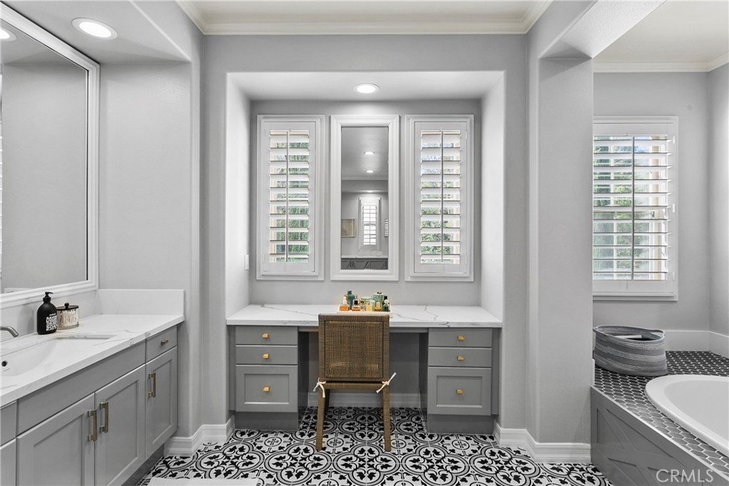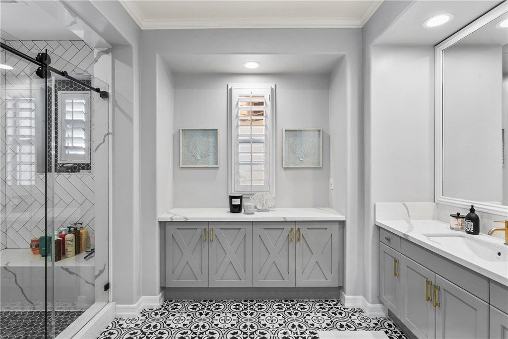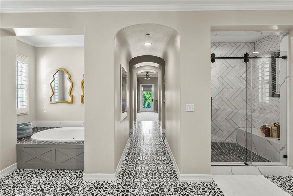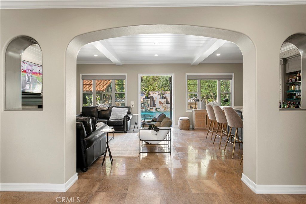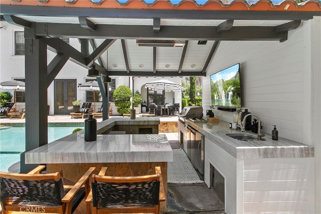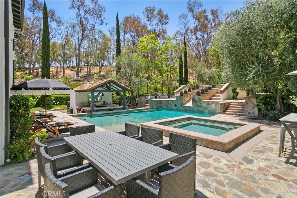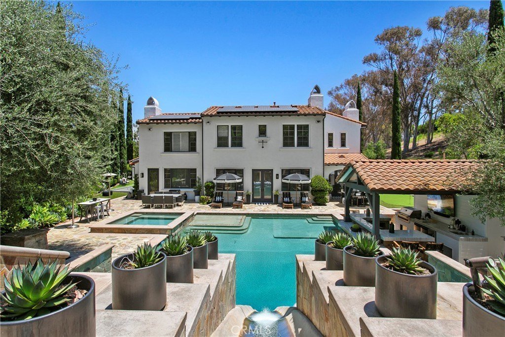 Stellen Sie sich ein atemberaubendes Zuhause vor, das zeitlose Eleganz und raffinierten Stil im Herzen von Tustin ausstrahlt? Entdecken Sie Ihren eigenen privaten Rückzugsort in der begehrten Cameo Woods Community. Dieses außergewöhnliche Anwesen, am Ende einer friedlichen Sackgasse gelegen, befindet sich auf einem der größten Premiumgrundstücke im Viertel und sorgt für eine ideale Kombination aus Raum und Privatsphäre. Dieses beeindruckende Wohnhaus verfügt über vier großzügig gestaltete Schlafzimmer und vier Badezimmer sowie mehrere Wohnbereiche und helle Bonuszimmer, die mit natürlichem Licht durchflutet werden. Die renovierte Küche ist ein Traum für kulinarische Enthusiasten, ausgestattet mit hochwertigen Geräten und nahtlos in den geräumigen Wohnzimmer, der perfekt für Zusammenkünfte ist. Das prächtige Wohnzimmer, begleitet von einer beeindruckenden Bar, öffnet sich zu einem spektakulären Garten, der wirklich ein Paradies für das Leben im Freien ist. In diesem exquisiten Raum finden Sie eine Außenküche, ein großes Becken mit Swim-up-Bar und Rutsche, ein beruhigendes Spa, ein Putting-Green, einen Boccia-Platz und einen charmanten Kamin, alles ergänzt durch ein bequemes Poolbad. Entfliehen Sie in die ruhige Master-Suite, ein luxuriöser Rückzugsort, der mit den ruhigsten Spas konkurrieren kann, mit großzügigem Grundriss, großzügigem Kleiderschrank und einem zusätzlichen Bonuszimmer. Das Grundstück verfügt außerdem über eine angebaute Garage für zwei Autos, eine separate Einzelgarage und eine große Garage, in der ein Boot gelagert werden können und großzügige Stauraum angeboten werden. Jedes Detail wurde in diesem bemerkenswerten Anwesen sorgfältig bedacht. Bei diesen herausragenden Funktionen und mehr – warum zögern? Treten Sie ein in den luxuriösen Lebensstil, der Sie in diesem außergewöhnlichen Zuhause erwartet!