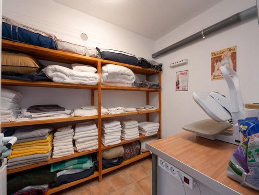 Im Untergeschoss des Haupthauses befinden sich eine Waschküche, ein Duschraum für Gäste/den Poolbereich, ein Abstellraum und die Sauna.