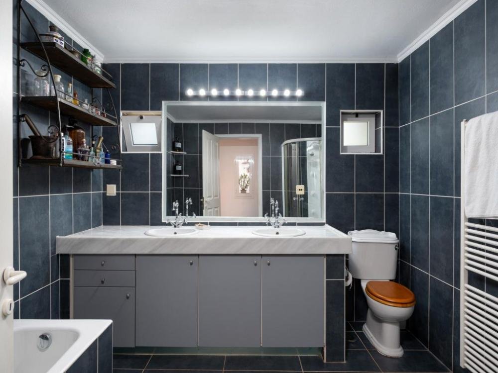 Die Villa (268 m²) besteht aus einem großen, offenen Wohn-/Essbereich mit Küche (und Speisekammer), einem Gäste-WC neben dem Wohnzimmer, einem Lese-/Arbeitszimmer (das auch als zusätzliches Schlafzimmer genutzt werden kann), einem großen Badezimmer mit Badewanne und Dusche, einem begehbaren Kleiderschrank und einem Hauptschlafzimmer mit überdachtem Balkon, der zum Pool und Grillbereich führt.