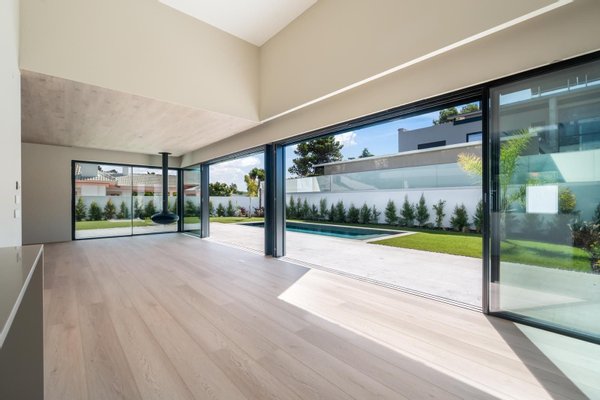 Villa T4+1 located in one of the most prestigious areas of Cascais. Carefully designed with a total area of 409 m2, this residence offers the perfect balance between comfort, elegance, and functionality. It features a private pool and garden, creating a truly peaceful and exclusive retreat.~~Ground floor:~Spacious social area with living and dining rooms featuring double-height ceilings, complemented by a suspended fireplace that adds warmth and sophistication. Fully equipped kitchen, office, and an ensuite bedroom complete this versatile and functional level.~~Upper floor:~Master suite with walk-in closet and two generous suites ensuring privacy and comfort, with outstanding finishes in every detail.~~Basement:~Garage for several vehicles, laundry room, and a multifunctional room with natural light, adaptable to your family’s needs.~~This villa stands out for its superior construction quality and sophisticated design:~- Minimalist sliding windows and continuous flooring, promoting a seamless connection between indoor and outdoor spaces.~- Excellent acoustic and thermal insulation, with dynamic shading systems for enhanced comfort.~- Low-consumption climate control and water-heating systems supported by solar panels and Daikin heat pumps.~- Premium Coretec vinyl flooring and lacquered carpentry.~- Kitchens equipped with Siemens appliances and Corian countertops.~- Bathrooms featuring natural stones such as Pietra Gray and Lioz, with wall-hung fixtures and built-in lighting.~- Living Now home automation system by Bticino/Legrand.~~More than just a house, this is the perfect address for those who value exclusivity, comfort, and a truly unique lifestyle.