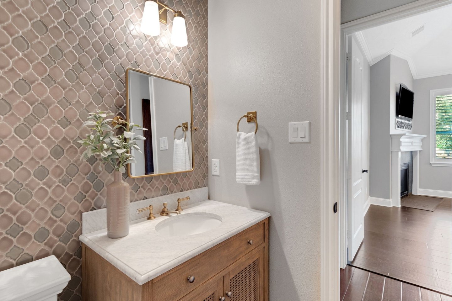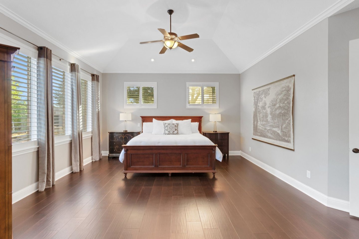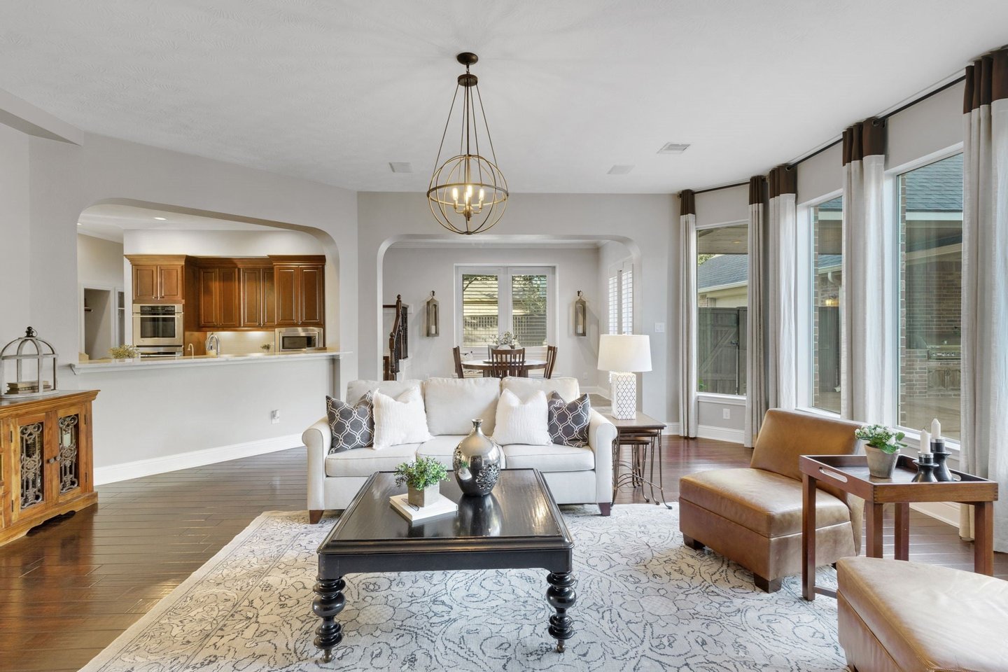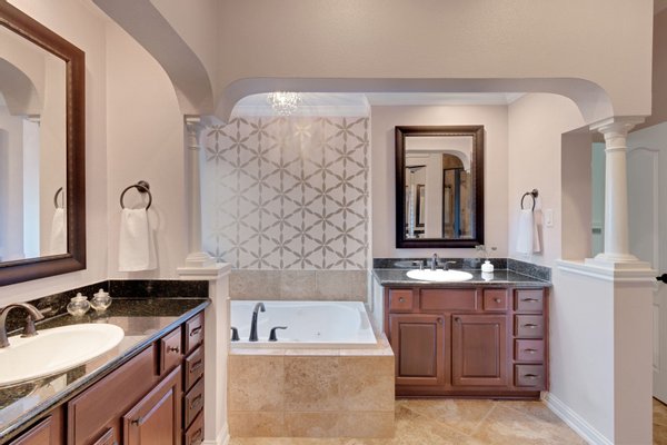 Versteckt in einer ruhigen Sackgasse bietet dieses außergewöhnliche Haus mit 5 Schlafzimmern, 5 Vollbädern + 2 halben Bädern die perfekte Mischung aus Luxus, Komfort und durchdachter Gestaltung. Mit ZWEI HAUPTSUITEN – eine oben und eine unten – jeweils mit Spa-ähnlichen Bädern, Doppel-Waschbecken und geräumigen Schränken ist das Layout ideal für das Leben mehrerer Generationen oder für Langzeitgäste. Das Wohnzimmer und das private Arbeitszimmer verfügen über individuell eingebaute Einrichtungen, während die Kochküche Taj Mahal-Quarzit-Arbeitsplatten, Doppelöfen, einen Topffüller und eine Getränkestation mit Weinkühlschrank bietet. Ein spezieller Medienraum bildet die Bühne für gemütliche Filmabende, und die 815 Quadratfuß (nicht in 5296 Quadratfuß enthaltene) Gästesuite über der Garage verfügt über einen übergroßen Unterhaltungsbereich und ein komplettes Bad. Draußen entspannen Sie sich am übergroßen Resort-Pool und Spa, umgeben von großzügiger Terrassenfläche und üppiger Landschaft. Eine geräumige Tandemgarage mit fünf Autos, ein Dachwechsel (Juni 2025), ein Teppichwechsel (2023) und eine makellose Einbesitzerpflege machen dieses Zuhause wirklich unvergesslich.