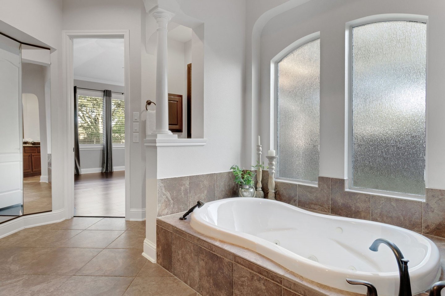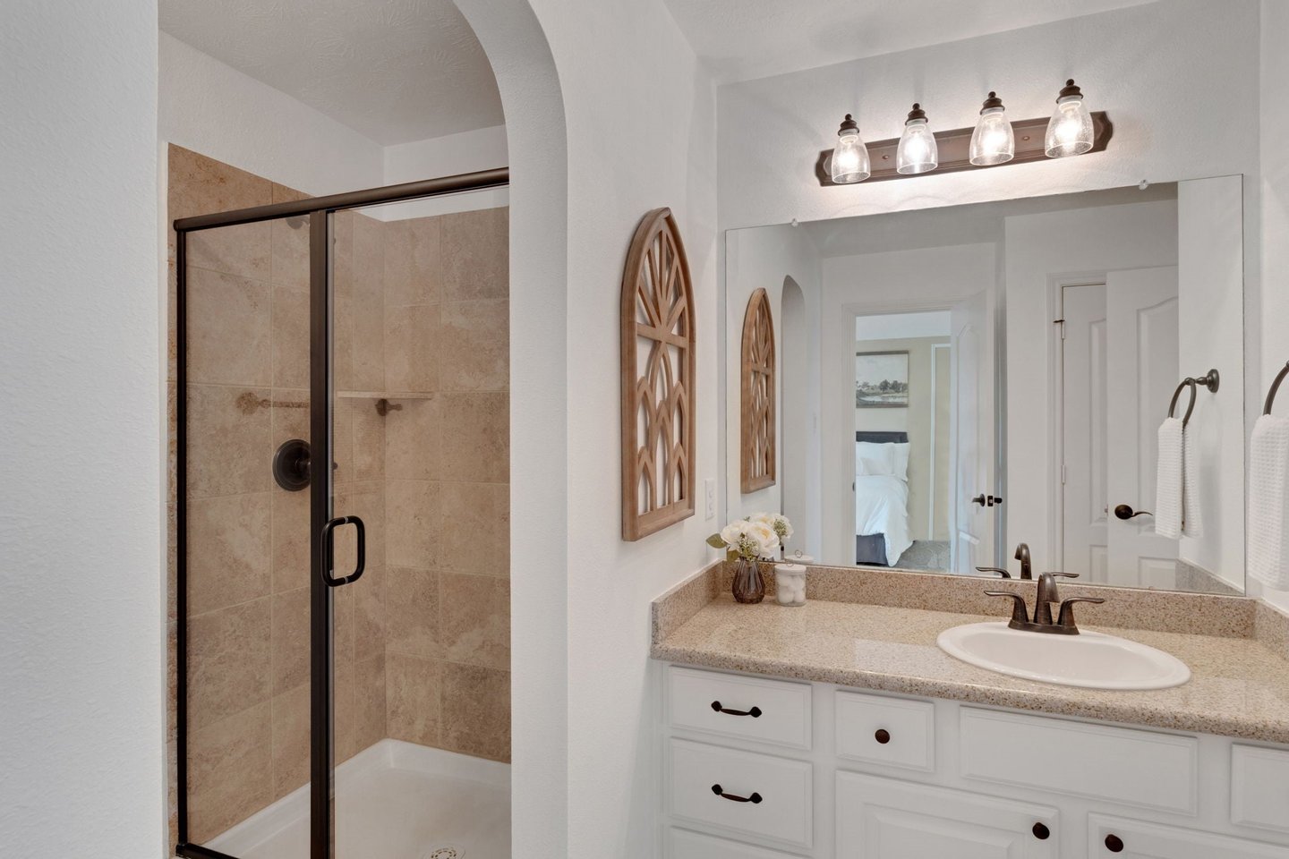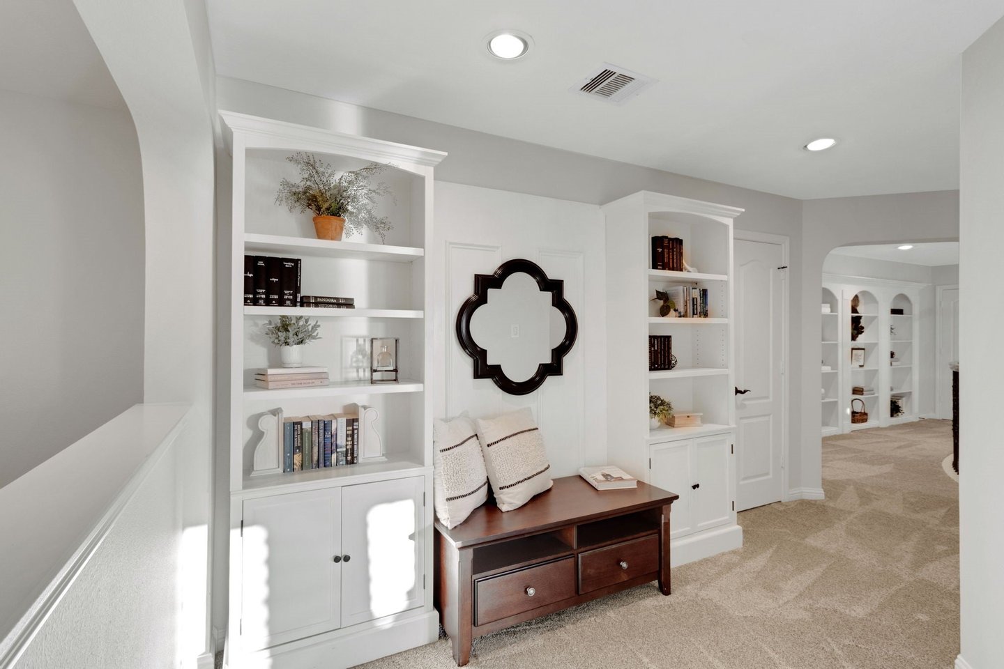 Versteckt in einer ruhigen Sackgasse bietet dieses außergewöhnliche Haus mit 5 Schlafzimmern, 5 Vollbädern + 2 halben Bädern die perfekte Mischung aus Luxus, Komfort und durchdachter Gestaltung. Mit ZWEI HAUPTSUITEN – eine oben und eine unten – jeweils mit Spa-ähnlichen Bädern, Doppel-Waschbecken und geräumigen Schränken ist das Layout ideal für das Leben mehrerer Generationen oder für Langzeitgäste. Das Wohnzimmer und das private Arbeitszimmer verfügen über individuell eingebaute Einrichtungen, während die Kochküche Taj Mahal-Quarzit-Arbeitsplatten, Doppelöfen, einen Topffüller und eine Getränkestation mit Weinkühlschrank bietet. Ein spezieller Medienraum bildet die Bühne für gemütliche Filmabende, und die 815 Quadratfuß (nicht in 5296 Quadratfuß enthaltene) Gästesuite über der Garage verfügt über einen übergroßen Unterhaltungsbereich und ein komplettes Bad. Draußen entspannen Sie sich am übergroßen Resort-Pool und Spa, umgeben von großzügiger Terrassenfläche und üppiger Landschaft. Eine geräumige Tandemgarage mit fünf Autos, ein Dachwechsel (Juni 2025), ein Teppichwechsel (2023) und eine makellose Einbesitzerpflege machen dieses Zuhause wirklich unvergesslich.