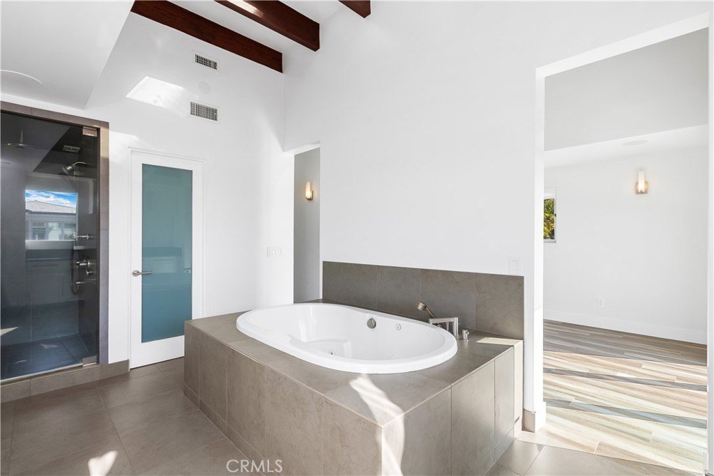 Im Obergeschoss befinden sich alle drei Schlafzimmer mit eigenem Bad, darunter ein ruhiger Rückzugsort mit einem Spa-inspirierten Bad mit zwei Waschbecken, einer Whirlpool-Badewanne, Oberlichtern und hohen Balkendecken. Zwei Balkone erweitern den Wohnraum unter freiem Himmel, aber das Kronjuwel ist die Dachterrasse, von der aus der Blick vom Anlegesteg auf Catalina Island, den Wedge und über den Hafen schweift. Dies ist der Inbegriff des Strandlebens, das zu einem außergewöhnlichen Preis angeboten wird. Eliisa Stowell 949-903-0026