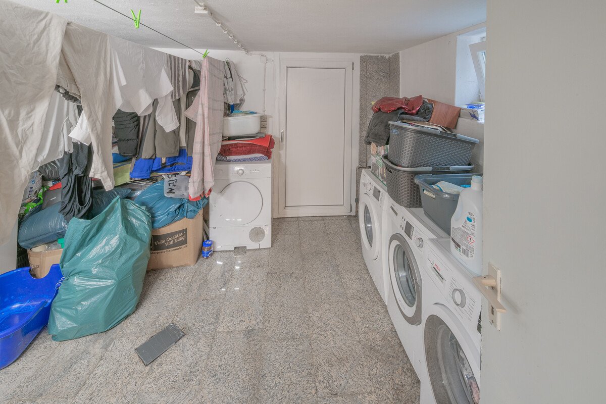 Im Erd- und Eingangsgeschoss öffnet sich der Eingangsbereich mit Garderobe, der Essbereich, das Wohnzimmer, sowie ein Badezimmer mit Dusche. Eine Ebene darunter finden Sie die Schlafetage mit zwei Schlafzimmern und einem Balkon, sowie im Untergeschoß einem Keller, sowie Sauna mit Bad und WC.