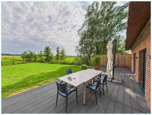 Ein echter Wohntraum unter Reet mit separatem Gästebereich und riesigen Südterrassen mit tollem Blick ins Eiderstedter Marschland!