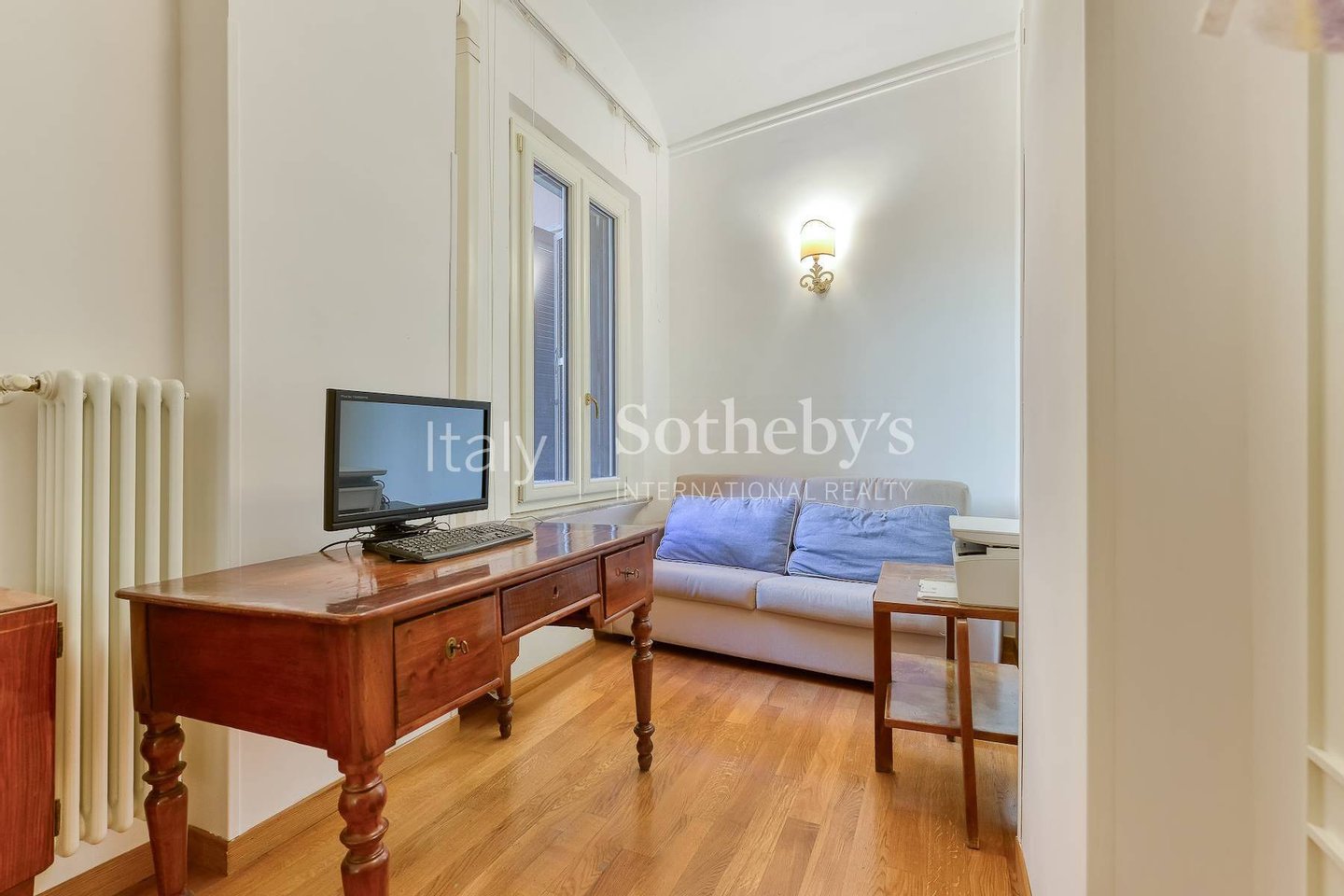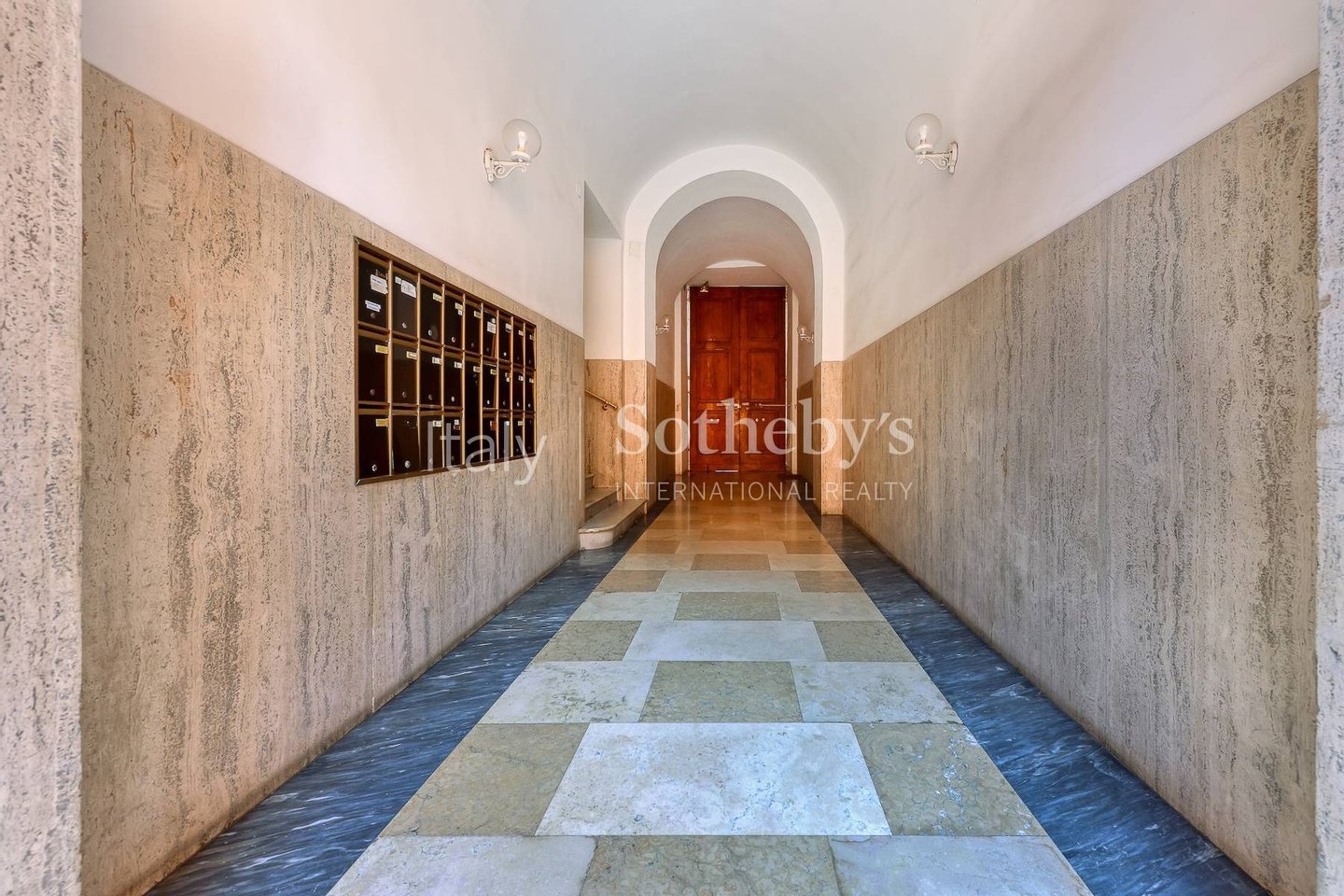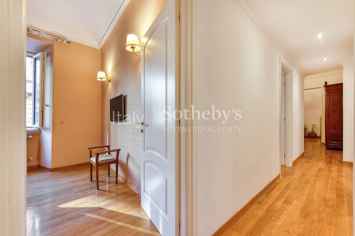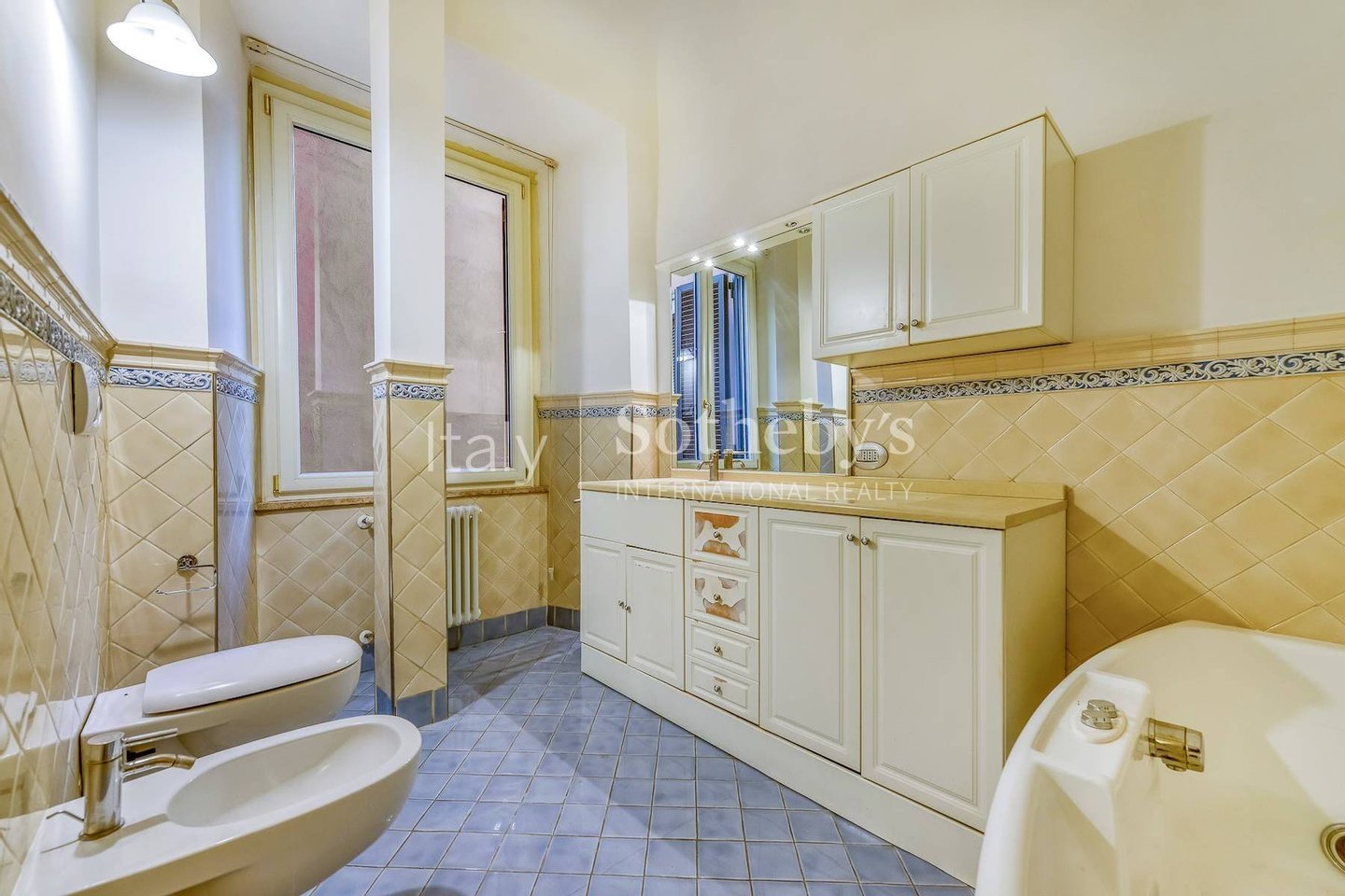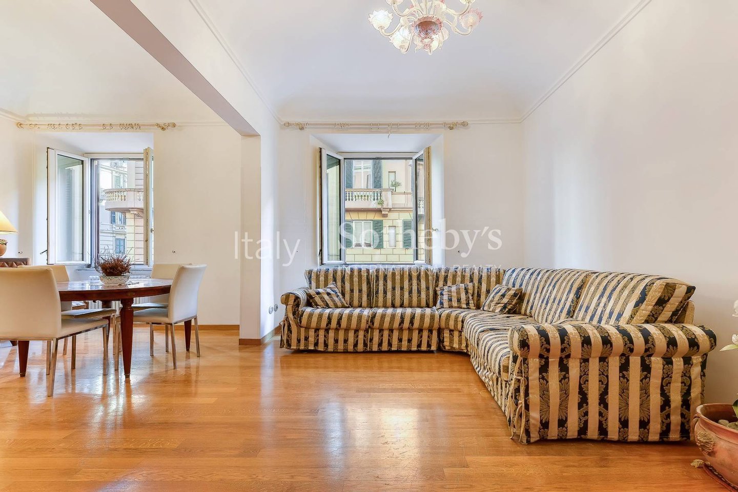 Im Stadtteil Prati, in der Via Tibullo, befindet sich diese repräsentative Wohnung im ersten Stock, die sich durch großzügige Raumhöhen und eine bemerkenswerte Helligkeit auszeichnet.
