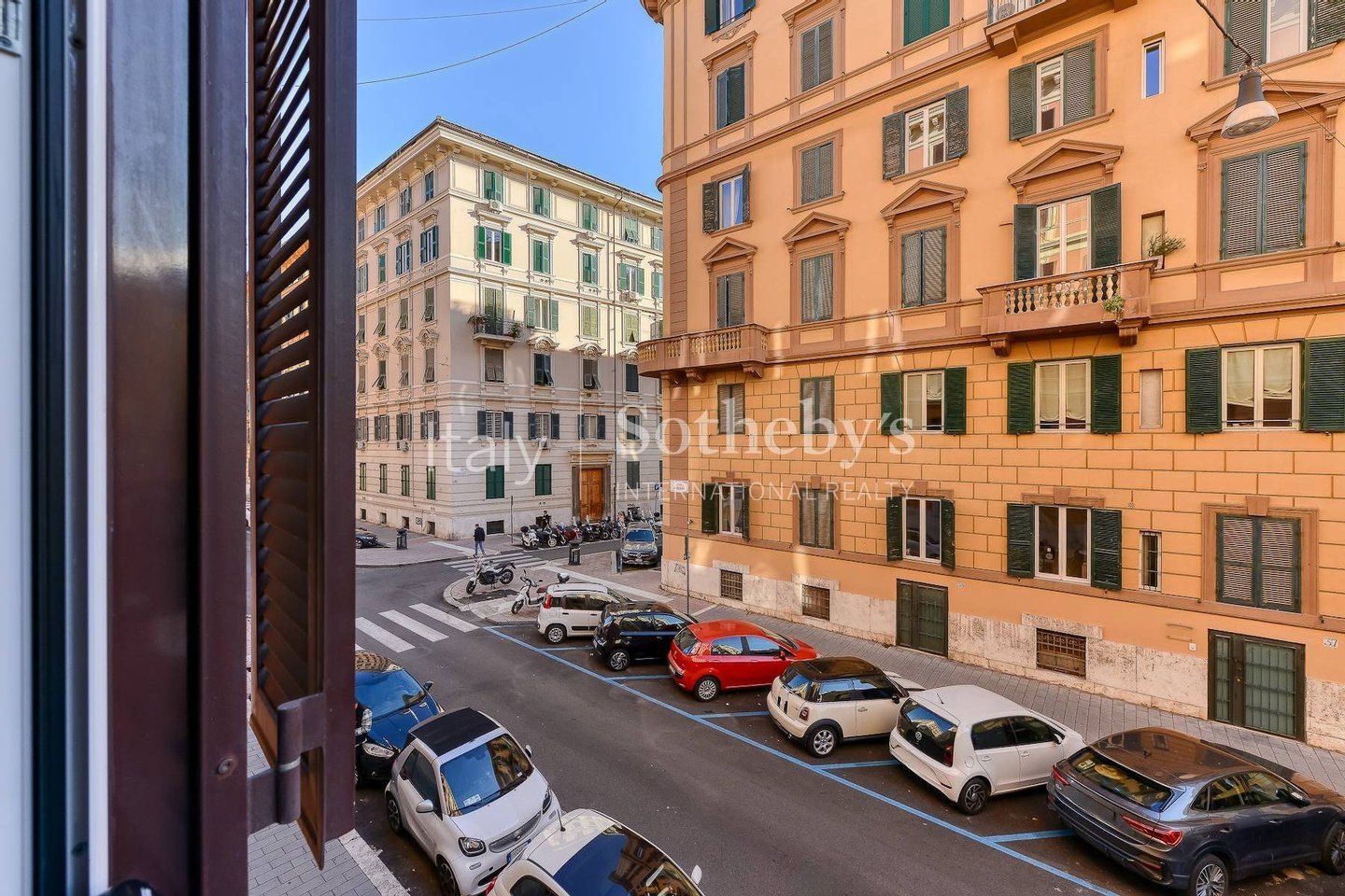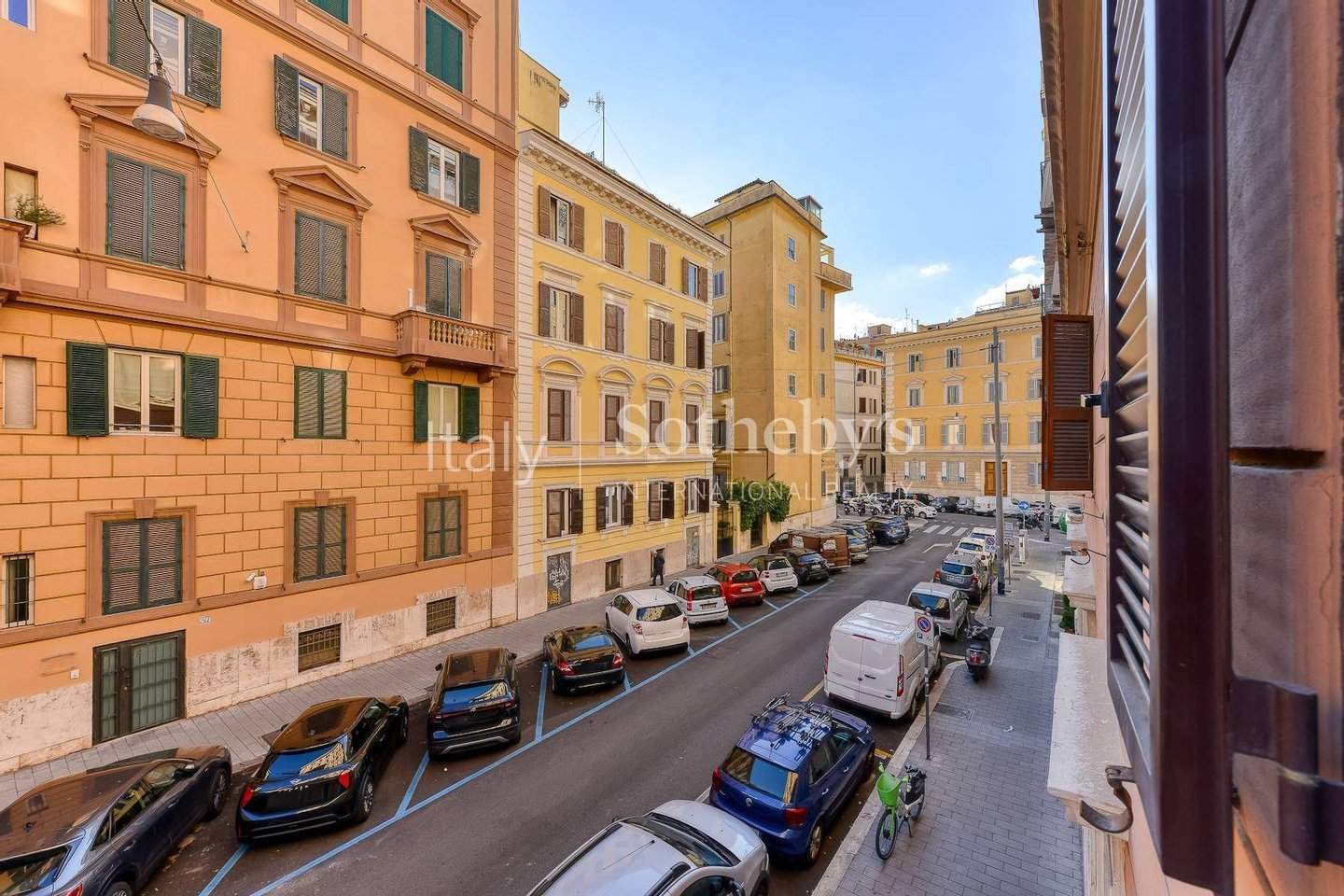 Im Stadtteil Prati, in der Via Tibullo, befindet sich diese repräsentative Wohnung im ersten Stock, die sich durch großzügige Raumhöhen und eine bemerkenswerte Helligkeit auszeichnet.Die Lage bietet direkten Zugang zur Via Cola di Rienzo