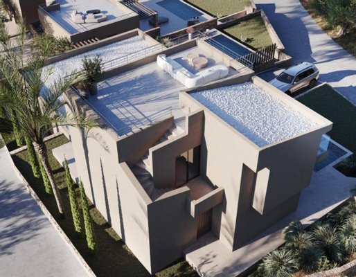 Alle 5 Villen eines Komplexes verfügen über 2 Parkplätze und einen Swimmingpool.