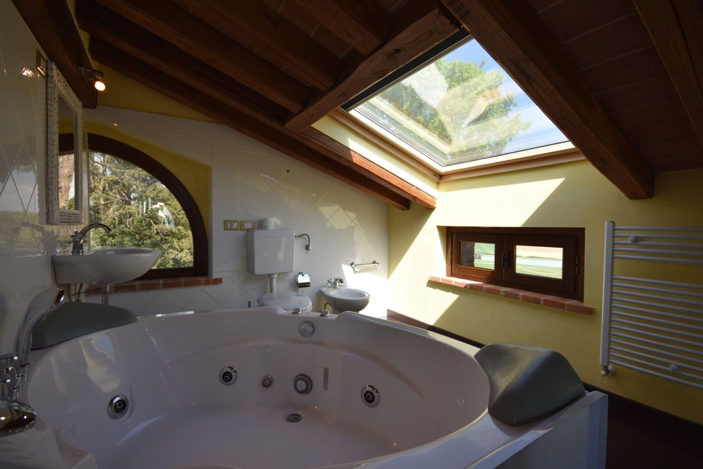 Typ: Bauernhauskomplex von 1451 Quadratmetern, bestehend aus einer Villa von 325 Quadratmetern auf vier Etagen mit Aufzug und Swimmingpool; einem Bauernhaus von 570 Quadratmetern mit 8 Wohnungen, einer Dependance von 170 Quadratmetern mit 4 Suiten, zweitem Swimmingpool, multifunktionaler Struktur von 350 Quadratmetern mit Panoramaterrasse, Park und Land mit Olivenhain