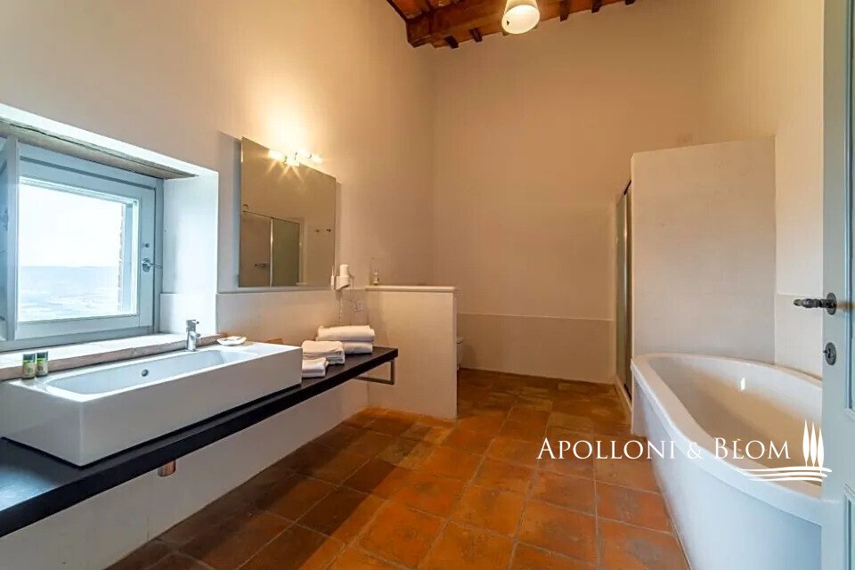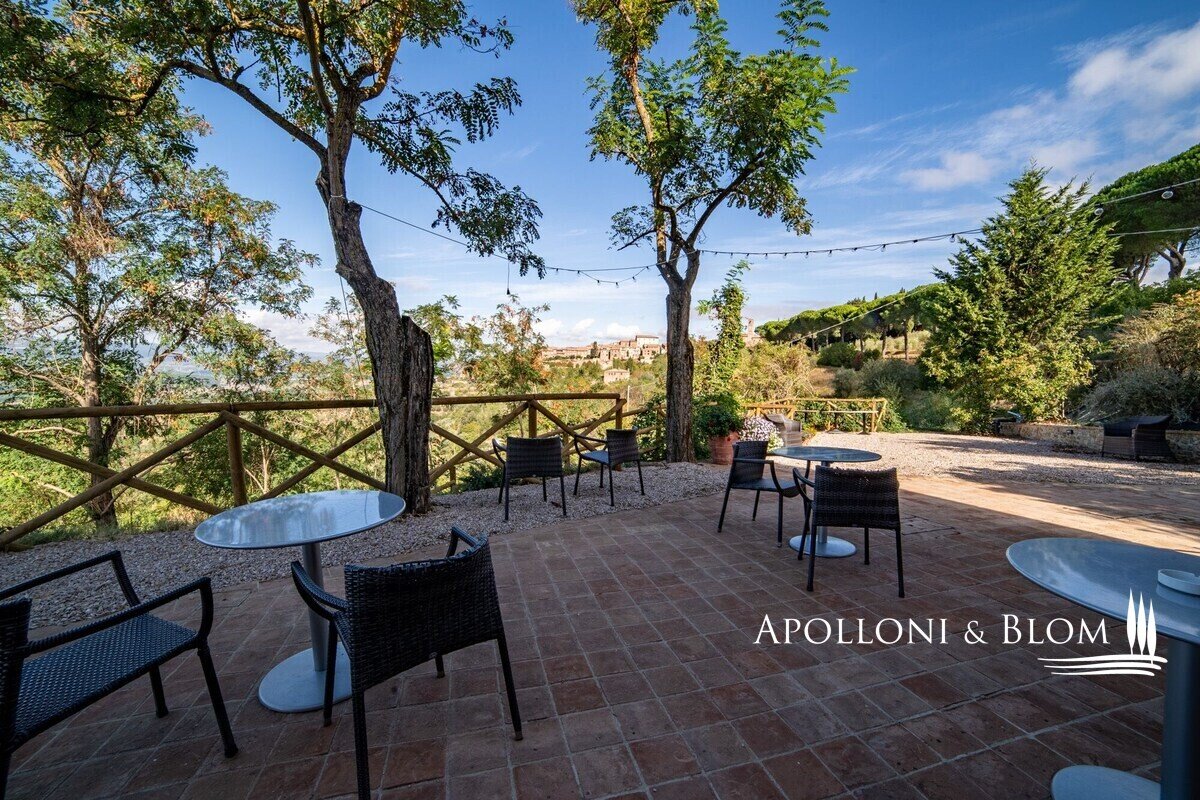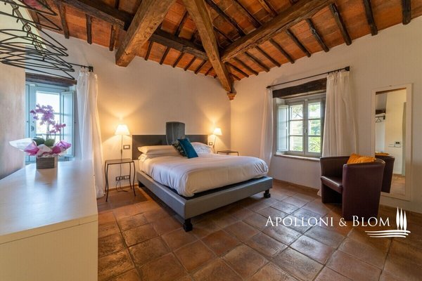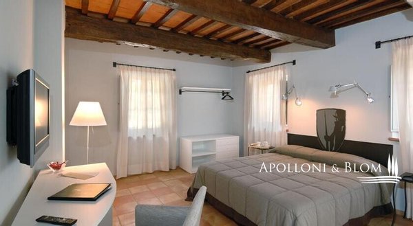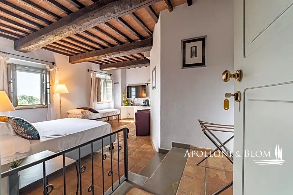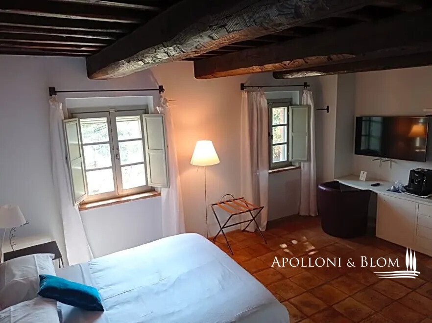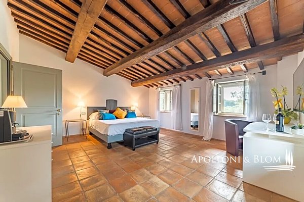 Wunderschön restauriertes Bauernhaus aus Stein aus dem Jahr 1800 mit 6 Zimmern, Restaurant und Swimmingpool in Città della Pieve, Perugia, zu verkaufen. Es befindet sich im grünen Herzen Mittelitaliens, an der Grenze zwischen Umbrien und der Toskana, ein idealer Ausgangspunkt für den Besuch von Orten, die reich an Geschichte und Tradition sind, gleich außerhalb des historischen Zentrums von Città della Pieve, das mit seinen mittelalterlichen Dächern und Glockentürmen das Panorama dominiert. Eine von hohen Pinien gesäumte Allee führt zu diesem prächtigen Gebäude aus rohem Stein mit einem herrlichen Blick über das Val di Chiana bis hin zum Monte Cetona. Ein faszinierender Ort, der seit 1800 Wanderer und Pilger zur Rast auf ihren Reisen beherbergt hat und heute geschickt restauriert und in ein elegantes "Boutique-Hotel" mit Restaurant und Schwimmbad umgewandelt wurde. Die hohen rauen Steinfassaden, die Terrakotta-Höfe und die gemauerten Blumenbeete sind bezaubernd. Die Innenräume sind sehr stimmungsvoll, wobei die hohen Decken mit freiliegenden Holzbalken und Backsteinbögen beibehalten wurden, die perfekt mit den hellen salbeigrünen Holzrahmen und Terrakottaböden harmonieren. Eine große Terrasse ist mit Wohn- und Essbereichen im Freien ausgestattet und bietet einen der schönsten Ausblicke auf die Stadt. In den Erdgeschossen befinden sich Empfangs- und Rezeptionsbereiche, Restauranträume und eine Küche. Im ersten und zweiten Stock befinden sich sechs komfortable und geräumige Zimmer, die mit Safes, Minibars, Klimaanlagen und modernen Bädern ausgestattet sind. Der erst im Frühjahr 2023 fertiggestellte, unregelmäßig geformte Swimmingpool ist perfekt in die natürliche Umgebung des Parks eingebettet. Casale La Posta ist eine einzigartige Residenz mit gemütlichen, hellen Zimmern in einer rustikalen Atmosphäre, die von einer treuen Kundschaft genutzt wird und jedes Jahr als ideales Urlaubsziel gewählt wird, aber auch als privater Wohnsitz für Familie und Freunde geeignet ist.