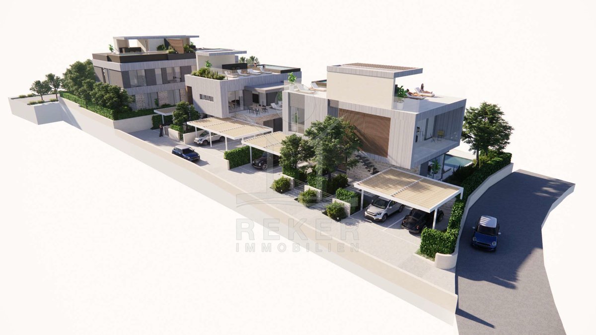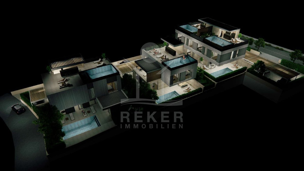 Ein Ort, der verbindet: Meerblick, moderne Architektur und echtes Entwicklungspotenzial. Dieses Grundstück in erster Meeresreihe ist mehr als ein Bauplatz … es ist die Bühne für Ihr Projekt. Drei Häuser. Sieben Pools. Und unendlich viele Möglichkeiten für Ihr Investment an der Adria.
