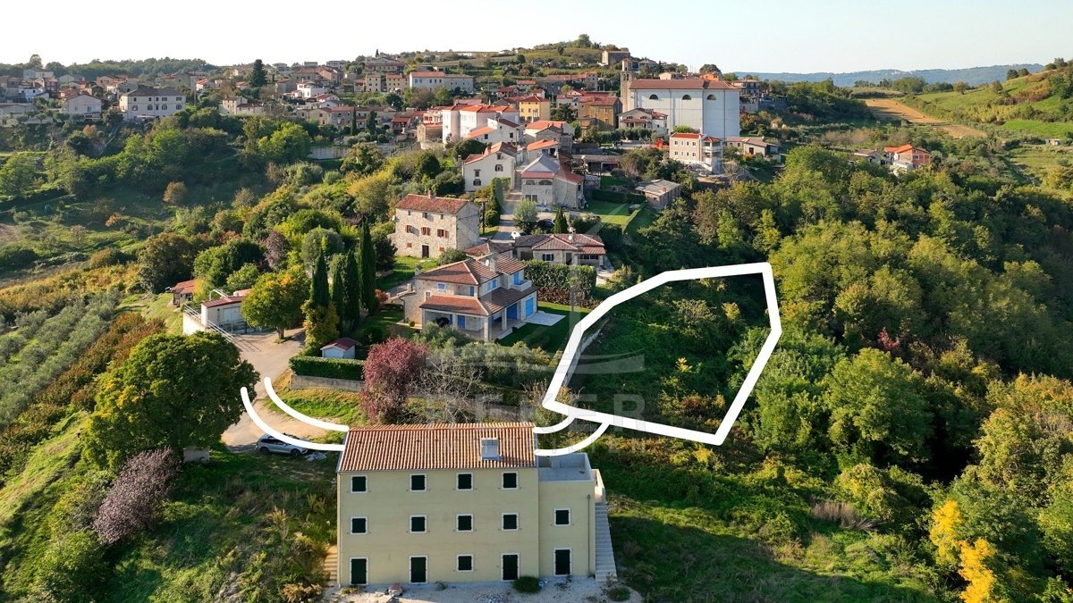 Die Fläche erlaubt den Bau einer Villa mit bis zu 420 m² Grundfläche, inklusive Pool, Garten und Nebengebäuden. Dank der Hanglage sind verschiedene Baukonzepte möglich, die das natürliche Gefälle einbeziehen und den Blick auf Motovun betonen. In der Nachbarschaft finden sich gepflegte Steinhäuser und neue Villen inmitten mediterraner Vegetation, ein hochwertiges Umfeld mit authentischem Charakter.