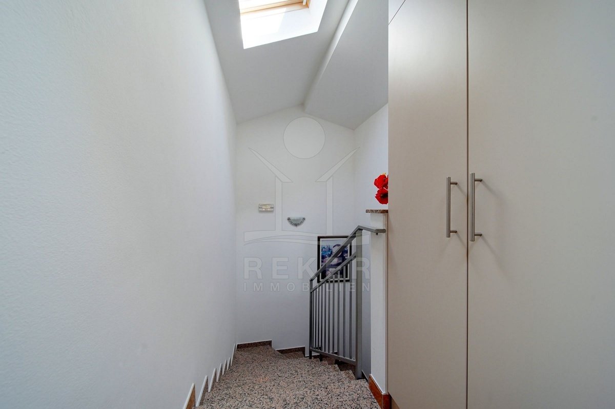 Diese helle Dachgeschosswohnung befindet sich in einem ruhigen Wohnviertel von Rovinj, nur rund 15 Gehminuten vom historischen Zentrum entfernt. Sie profitieren von einer harmonischen Kombination aus Ruhe und Nähe zum städtischen Leben. Geschäfte, Restaurants, Schule und Kindergarten erreichen Sie bequem zu Fuß. Öffentliche Parkmöglichkeiten befinden sich nur 90 m entfernt, die asphaltierte Zufahrt sorgt für eine angenehme Erreichbarkeit.