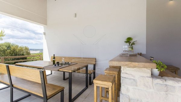 Der Außenbereich bietet alles für entspannte Stunden. Im Mittelpunkt steht der 58 m² große Infinity-Pool mit Gegenstromanlage, Massagedusche, Kinderzone und Unterwasserbank. Die großzügige Sonnenterrasse mit Lounge, Essbereich und Sommerküche mit Grill schafft ein Ambiente zum Genießen. Der liebevoll angelegte Garten mit Palmen und Kräutern bietet mehrere ruhige Sitzplätze. Ein Jacuzzi für sechs Personen und ein Wellnessbereich mit Sauna, beheiztem Laconium, Dusche und WC sorgen für Entspannung zu jeder Jahreszeit. Für Kinder gibt es einen kleinen Spielplatz. Erbaut im Jahr 2020, verbindet diese Villa Design, Komfort und mediterrane Lebensqualität. Eine Kombination, die Ruhe und Stil auf besondere Weise vereint.