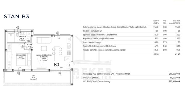 Das Gebäude fügt sich natürlich in seine Umgebung ein. Nur sechs Wohnungen auf drei Etagen bieten Privatsphäre und Großzügigkeit. Jede Einheit profitiert von der südlichen Ausrichtung und viel Tageslicht. POROTHERM-Ziegel mit verstärkter Armierung sorgen für Stabilität und gesundes Raumklima. Große Glas-Schiebetüren im REHAU-System bringen Helligkeit und Offenheit in jeden Raum. Das STO-Fassadensystem schützt dauerhaft und unterstreicht das klare Design. Römischer Travertin mit warmer Struktur akzentuiert Balkone und Treppen und betont den mediterranen Stil. Ein Aufzug verbindet alle Etagen und sorgt für bequemen Zugang. Praktische Details wie der Abstellraum und der eigene Außenstellplatz runden die Ausstattung ab.