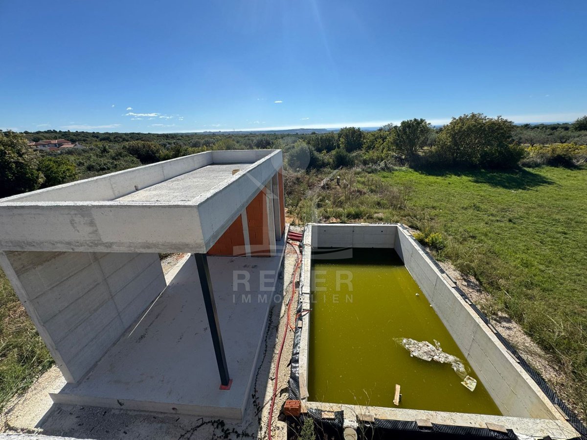 Vodnjan, ein charmantes istrisches Städtchen mit Geschichte, Olivenöl und ruhigem Lebensrhythmus. Hier entsteht ein modernes Haus mit weitem Blick auf die Brijuni-Inseln. Nur rund 4,5 km trennen Sie vom Meer. Eine schöne Kombination aus Küstennähe