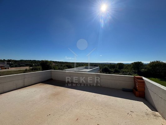 Vodnjan, ein charmantes istrisches Städtchen mit Geschichte, Olivenöl und ruhigem Lebensrhythmus. Hier entsteht ein modernes Haus mit weitem Blick auf die Brijuni-Inseln. Nur rund 4,5 km trennen Sie vom Meer. Eine schöne Kombination aus Küstennähe und entspannter Umgebung.