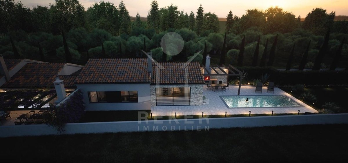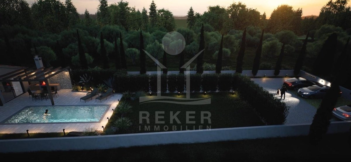 In einer ruhigen, grünen Gegend Istriens, rund 12 Kilometer von Poreč und etwa 6 Kilometer vom Meer entfernt, entsteht ein moderner Reihenhauskomplex mit drei Wohneinheiten. Hier verbinden sich Ruhe, Natur und die Nähe zur Küste auf angenehme Weise. Vor jedem Haus steht ein eigener Parkplatz, praktisch und komfortabel im Alltag.