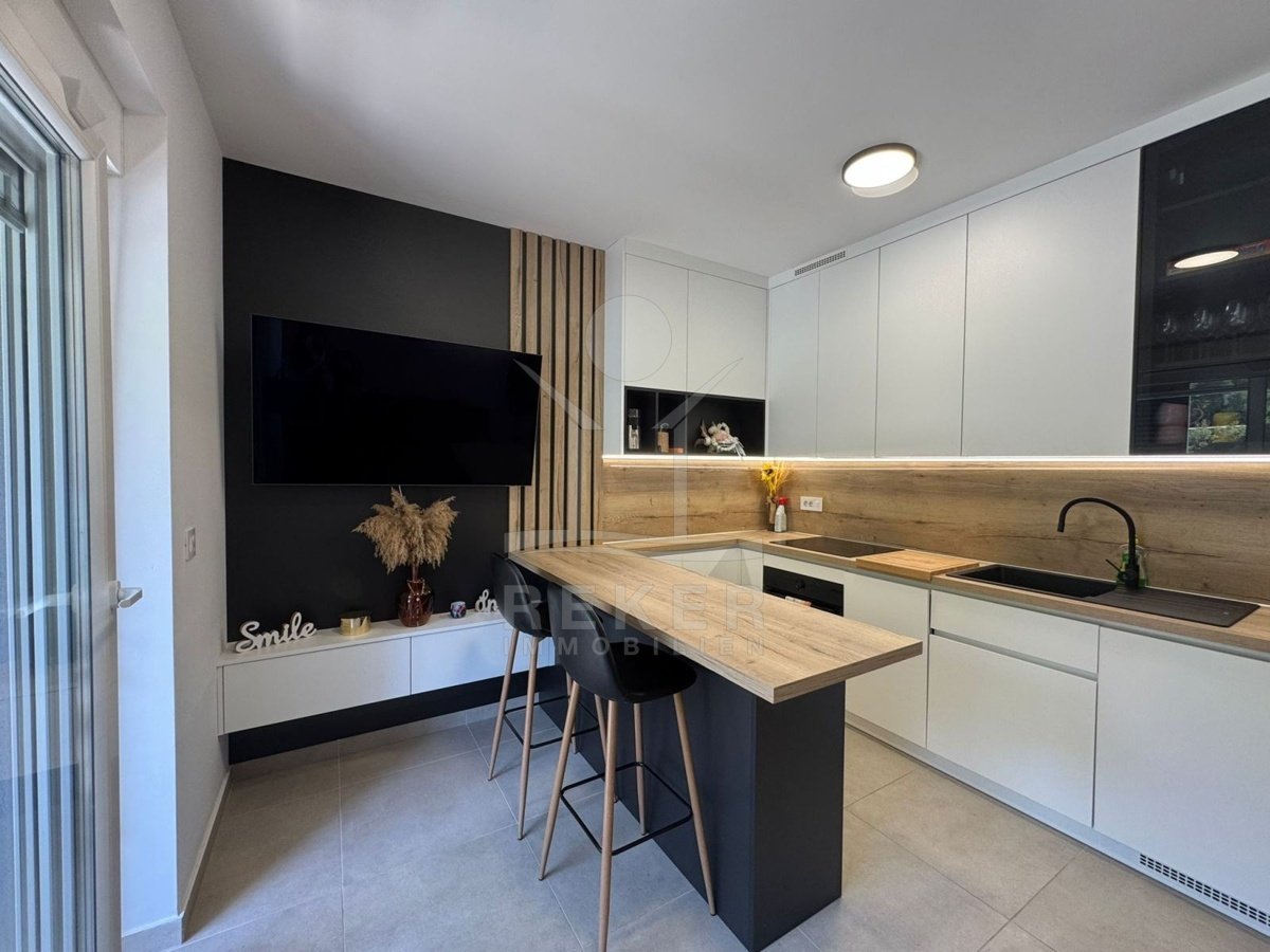 In einem charmanten Fischerdorf in der Gemeinde Kršan, erwartet Sie eine stilvolle Neubauwohnung, nur 20 Meter vom Meer entfernt. Hier erleben Sie Ruhe, Natur und einen weiten Blick über die Adria. Trotzdem sind Sie gut mit den umliegenden Städten verbunden. Ein privater Parkplatz direkt am Haus sorgt für bequemes Ankommen und sicheres Parken.