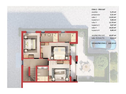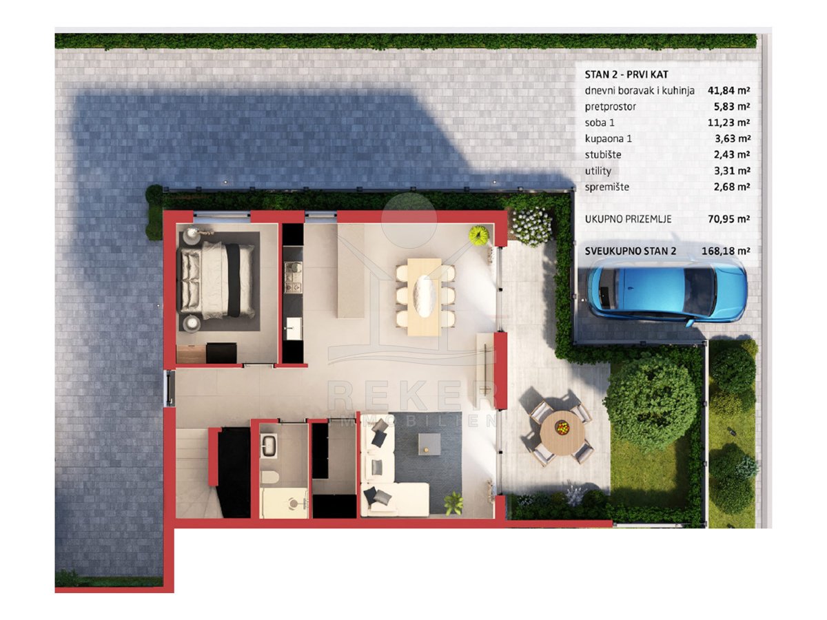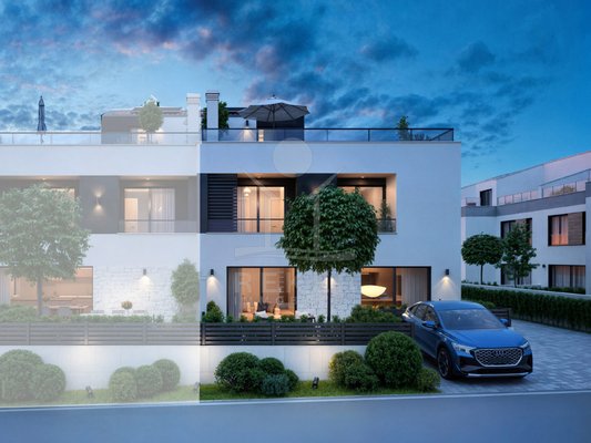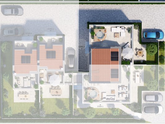 Ruhig wohnen, grün umgeben und doch nah am Meer: In Poreč entsteht dieses moderne Neubauhaus, nur zwei Kilometer vom Stadtzentrum und 1,7 Kilometer von der Küste entfernt. Die Lage verbindet Privatsphäre mit kurzen Wegen zu Einkaufsmöglichkeiten,